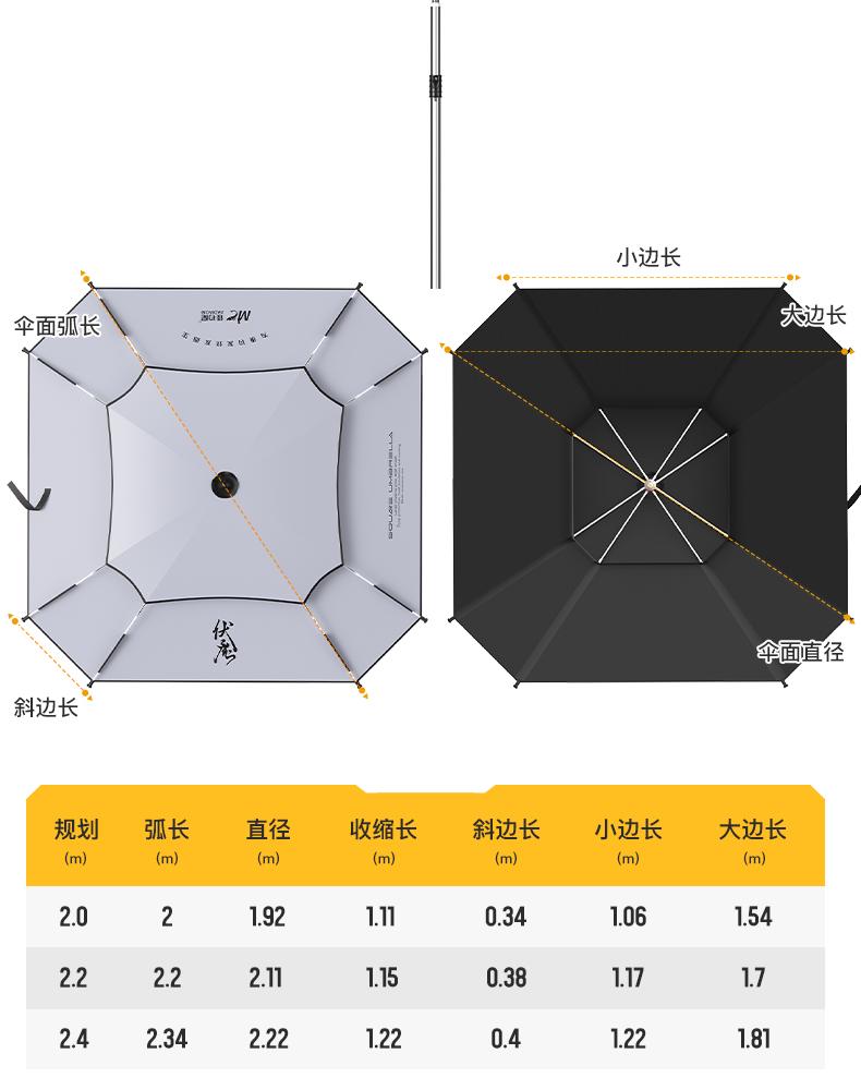 佳钓尼方形钓鱼伞防晒遮阳伞万向双弯地插拐杖防雨钓伞户外垂钓
