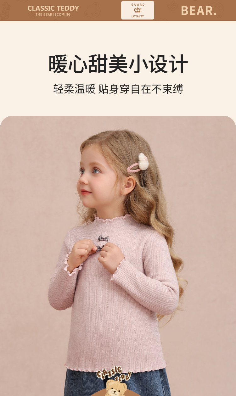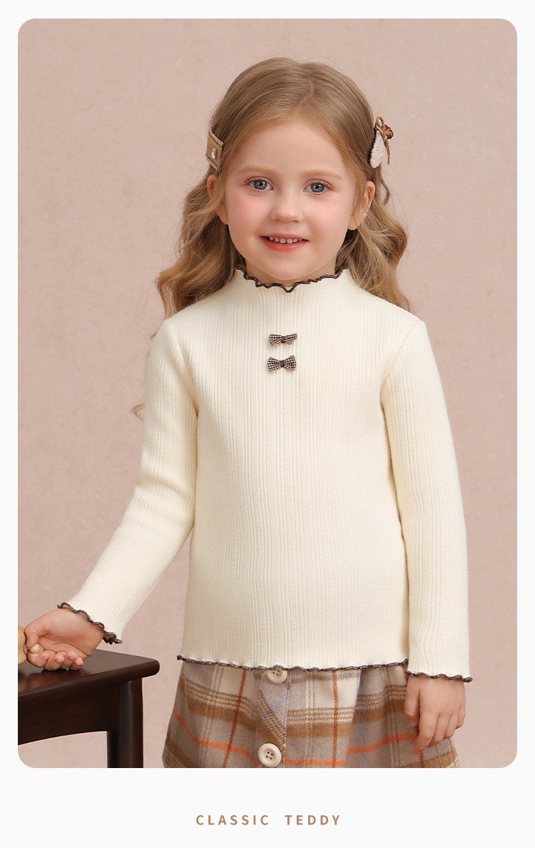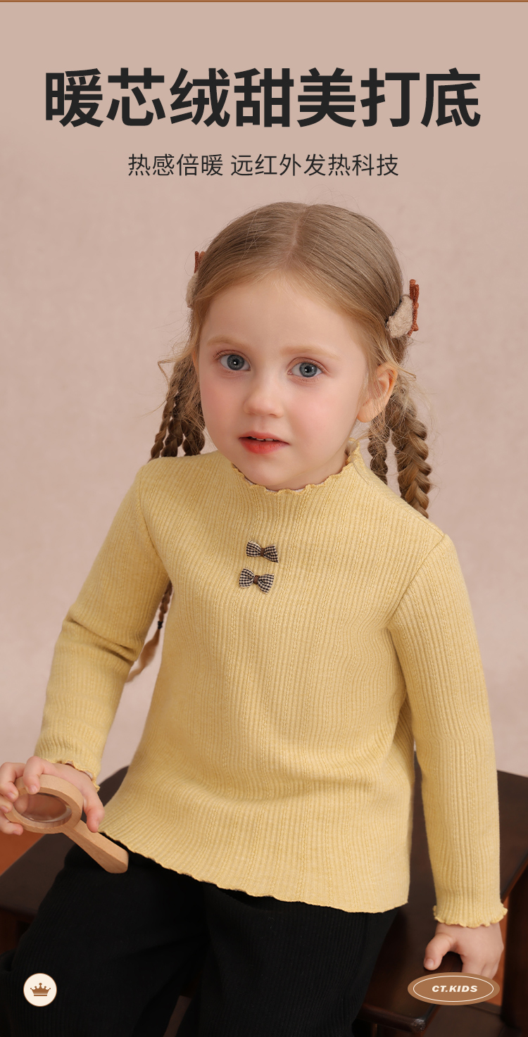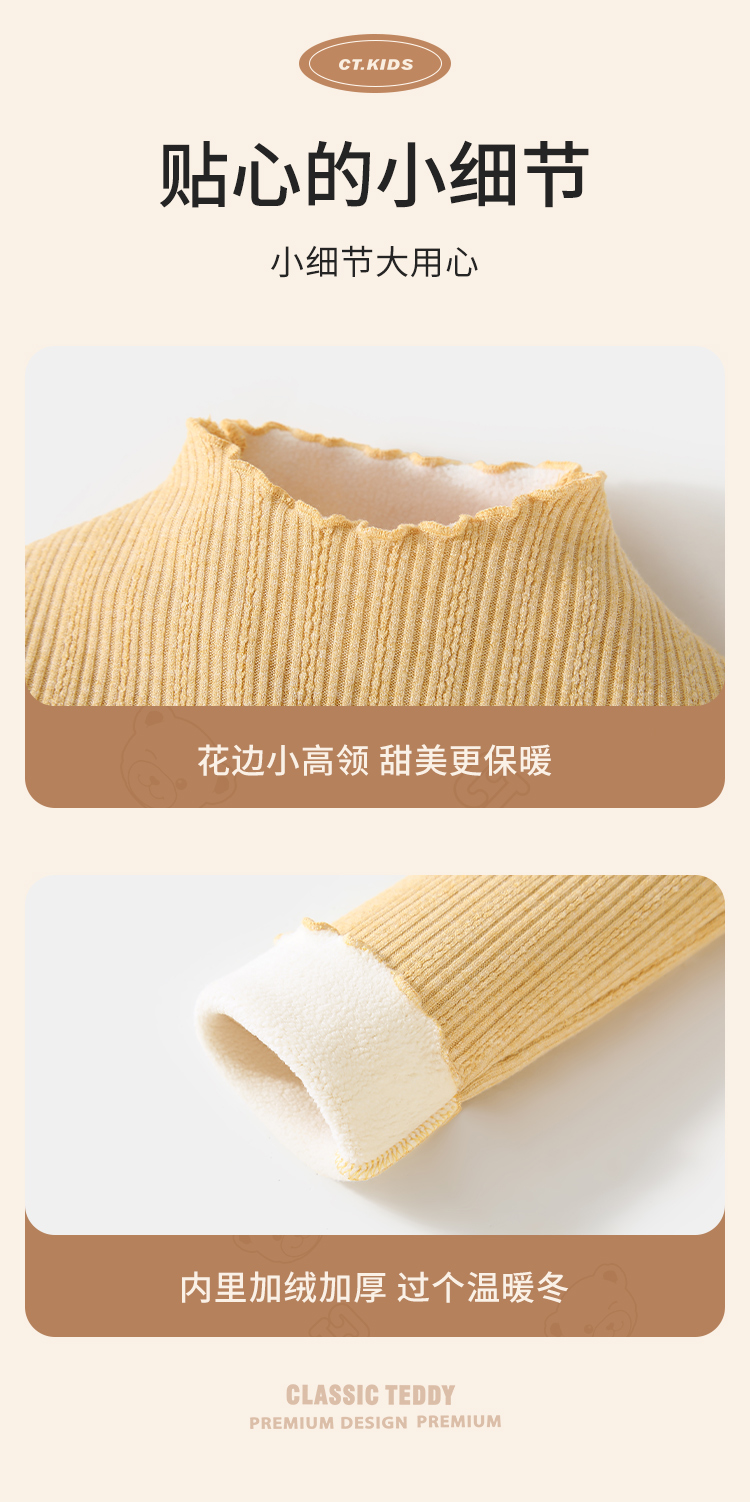 【加绒】【90-140】【精典泰迪】女童冬款加绒保暖打底衫