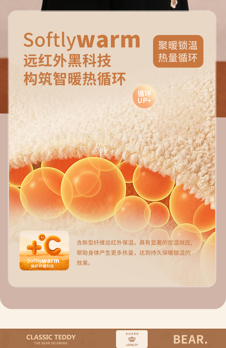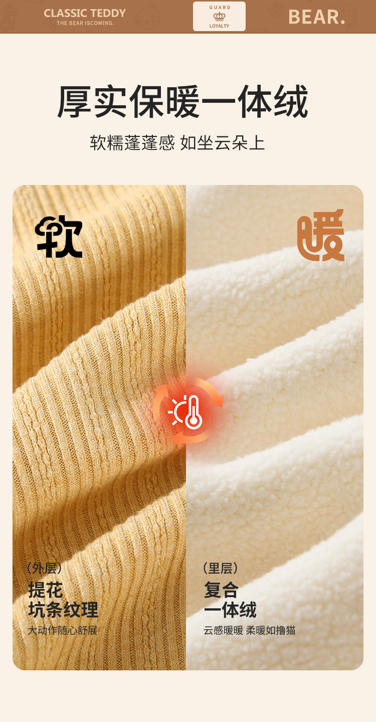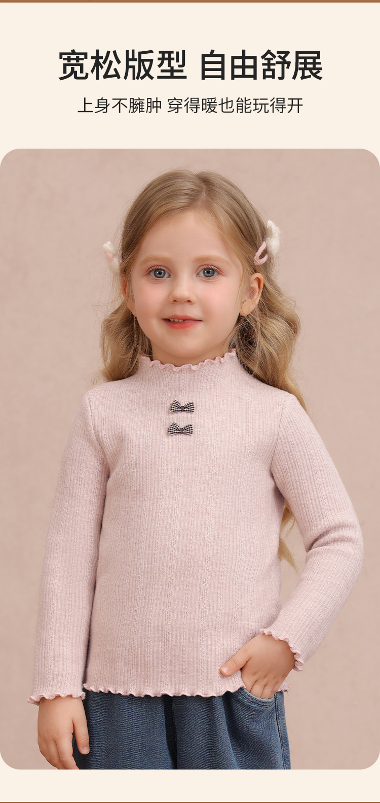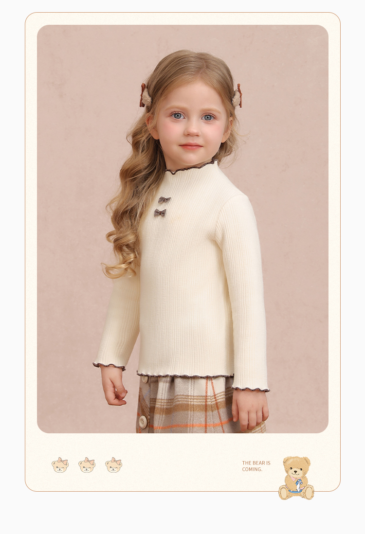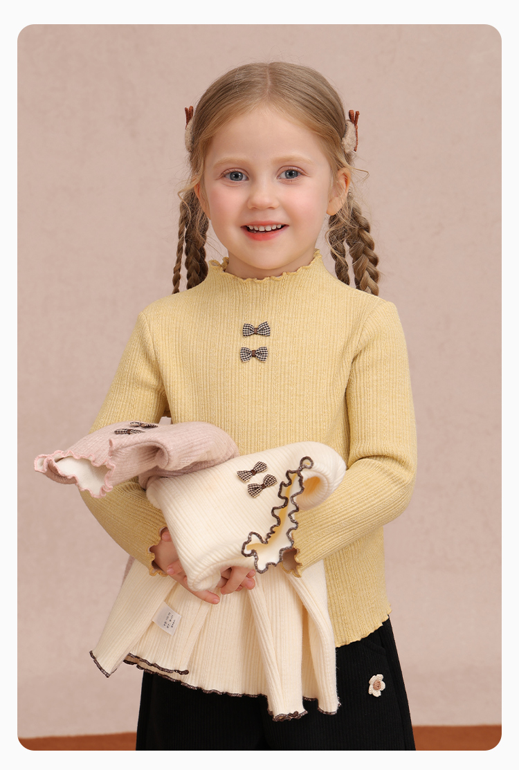 【加绒】【90-140】【精典泰迪】女童冬款加绒保暖打底衫