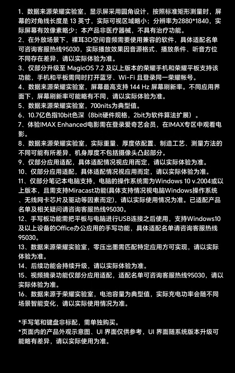 荣耀平板MagicPad 13英寸 8扬声器 144Hz高刷护眼 2.8K超清 移动办公影音娱乐平板