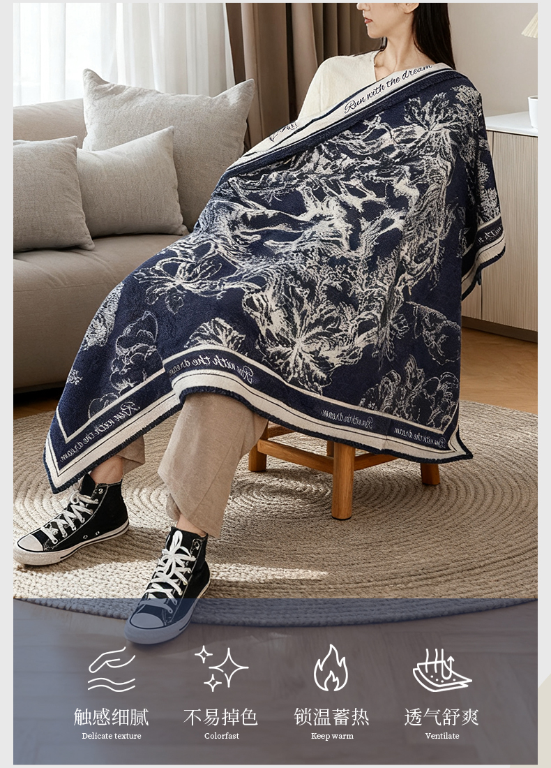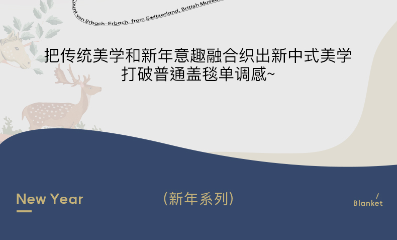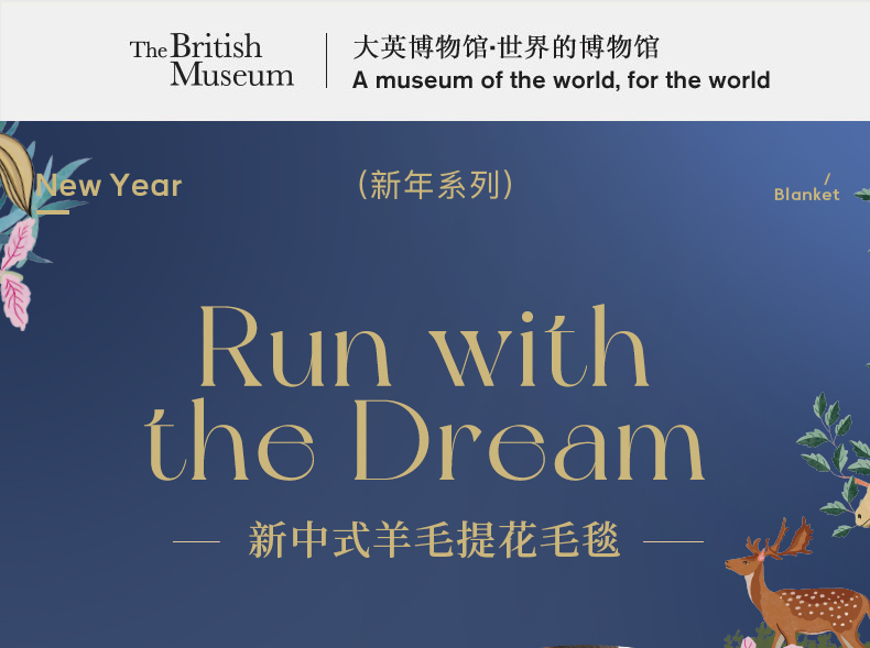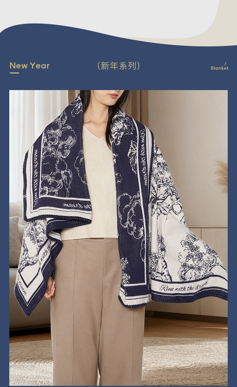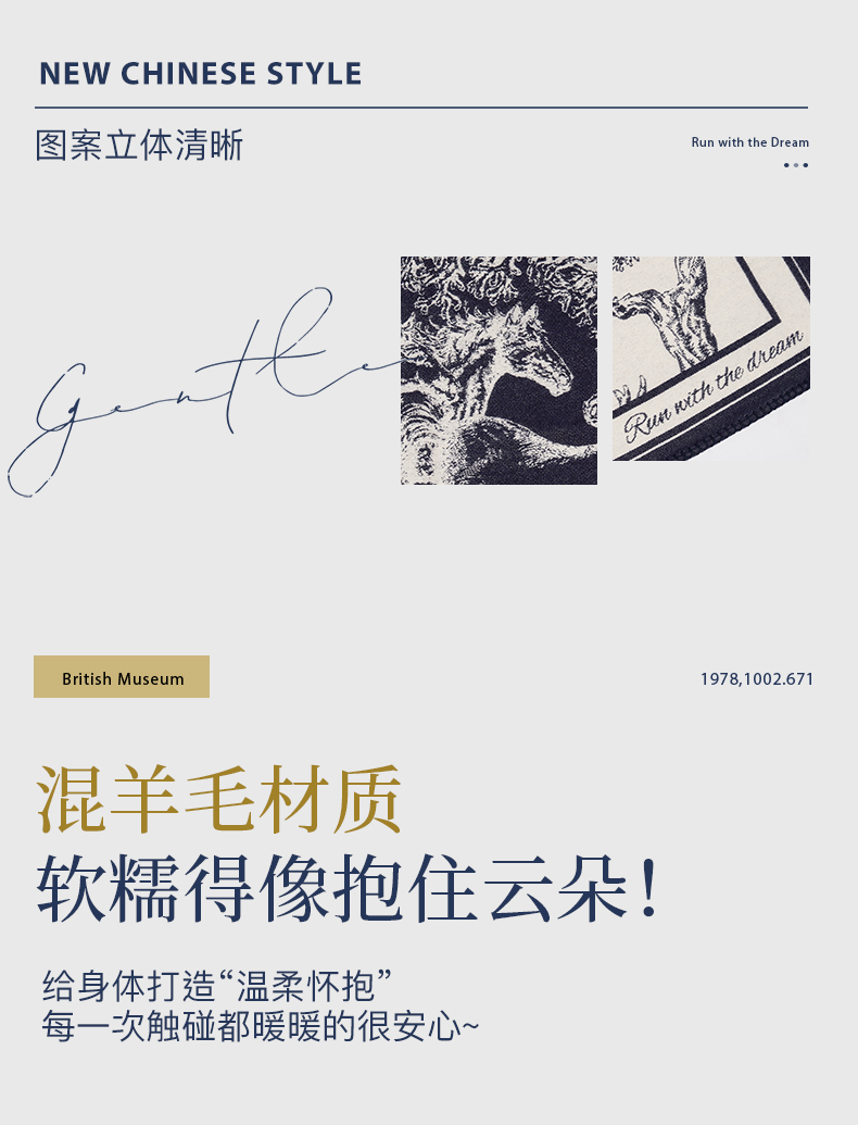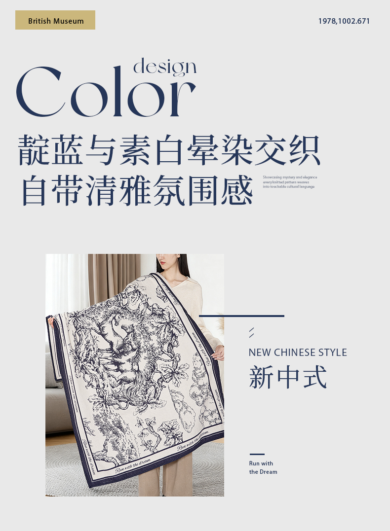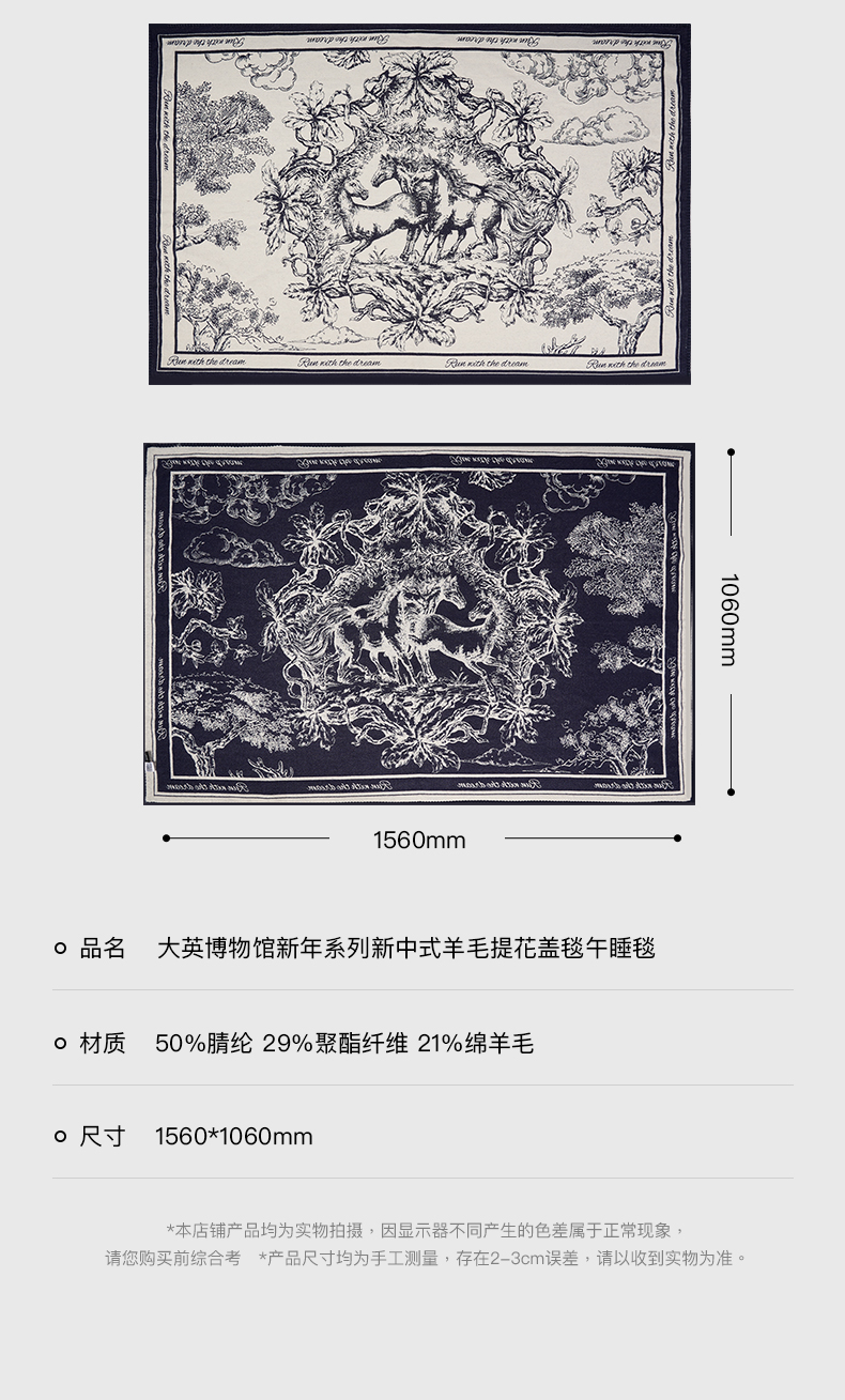 大英博物馆 新年系列 新中式羊毛提花 盖毯午睡毯