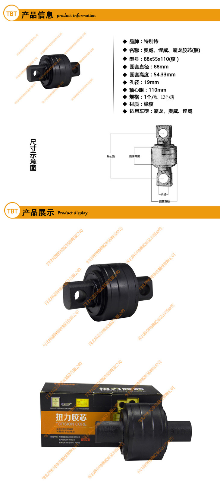 奥威扭力胶芯芯88*55*110(胶)(孔19、高54.33)(单价=1个,12个=1箱)悍威扭力胶芯8855110霸龙457桥扭力胶88*55*110奥威、悍威拉臂套、霸龙457桥拉臂套/拉力套