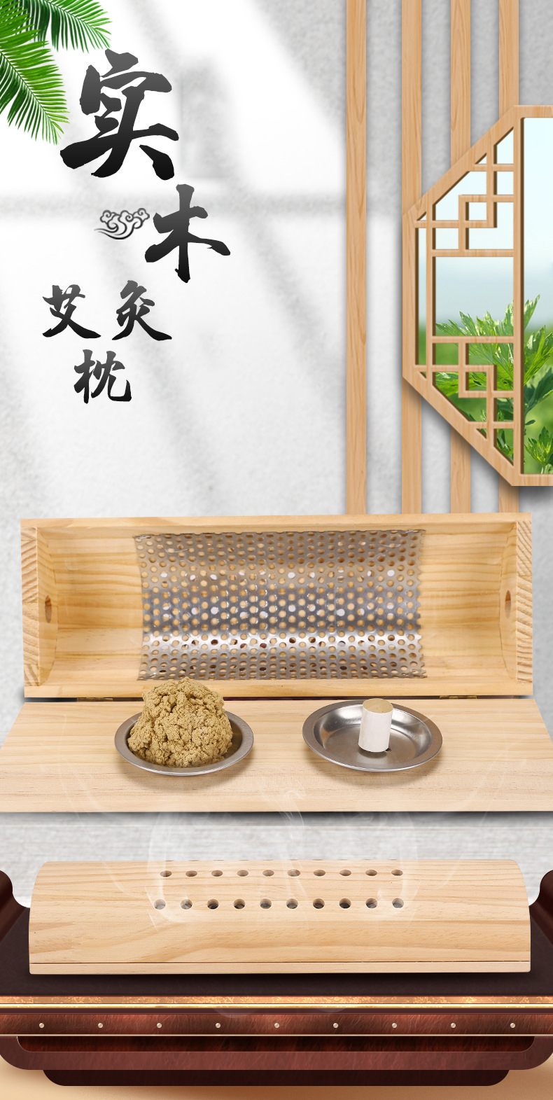 【实木艾灸枕 艾灸颈椎护颈枕枕头】一枕多用,翻盖开合式设计,过滤艾烟舒适艾灸,家庭艾草枕艾灸盒木质颈椎枕