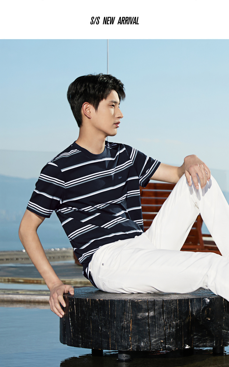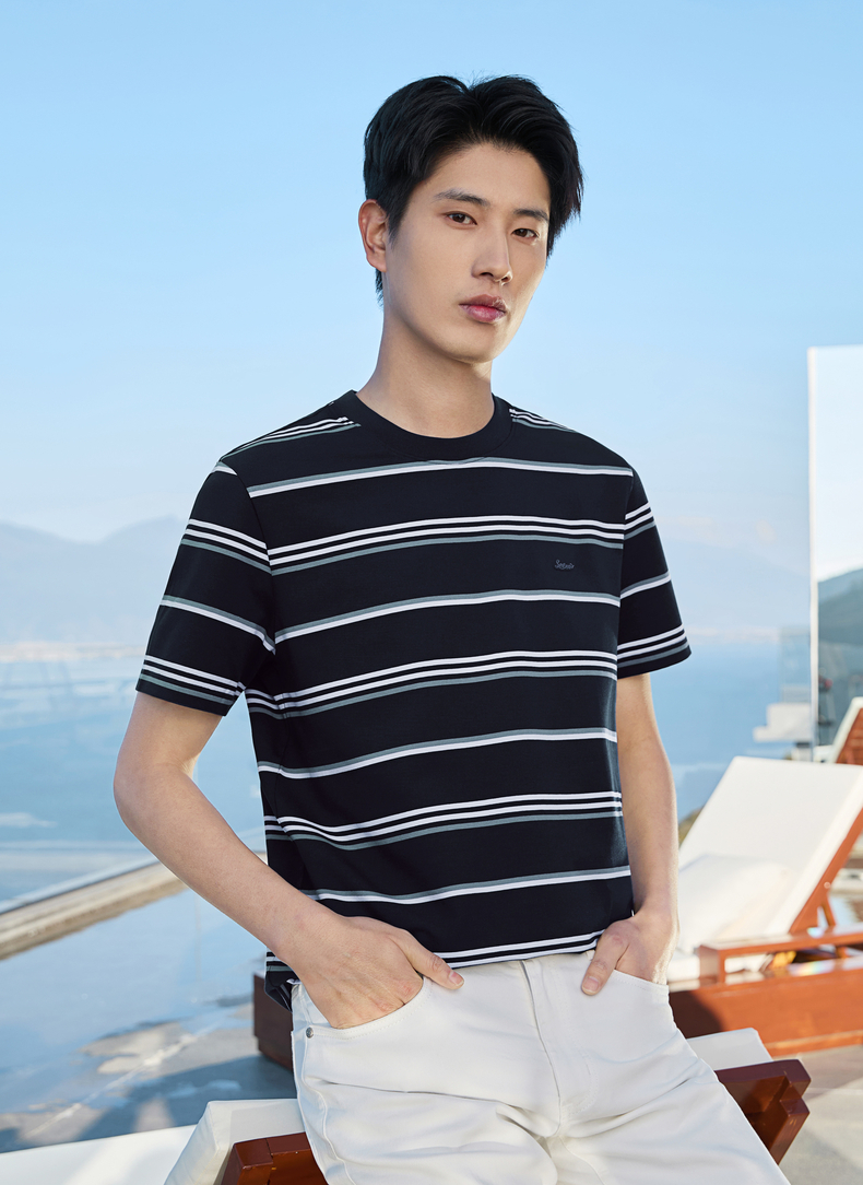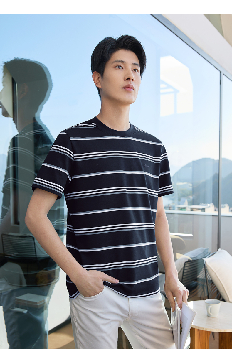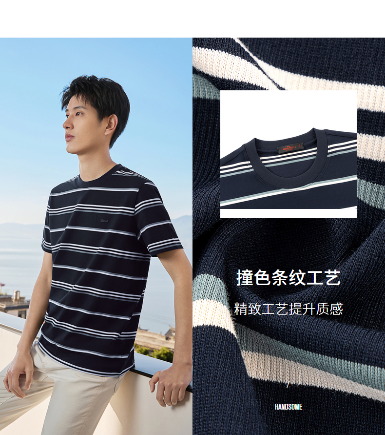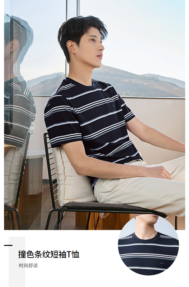 【条纹T恤】柒牌男装2026夏季新品经典商务撞色舒适中青年短袖T恤 130T72420