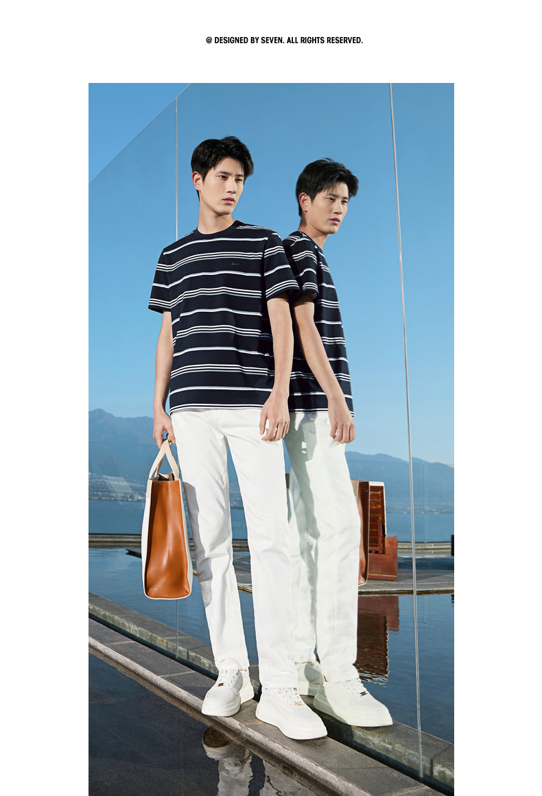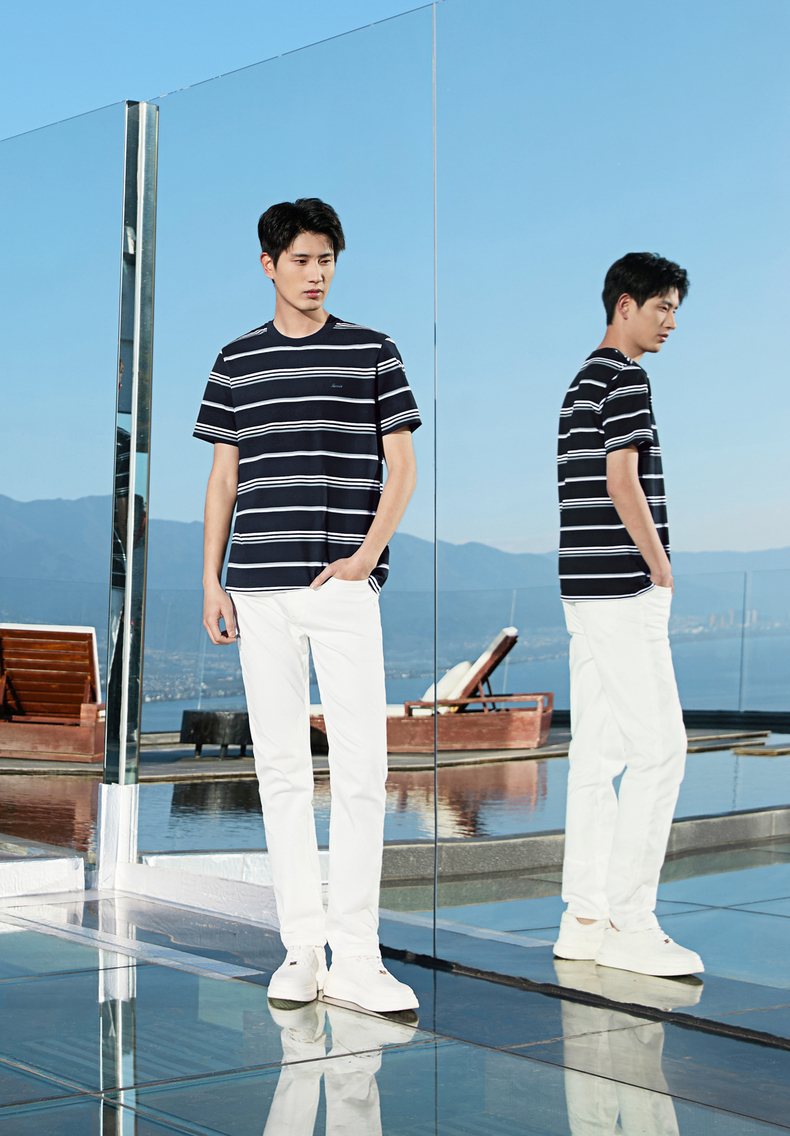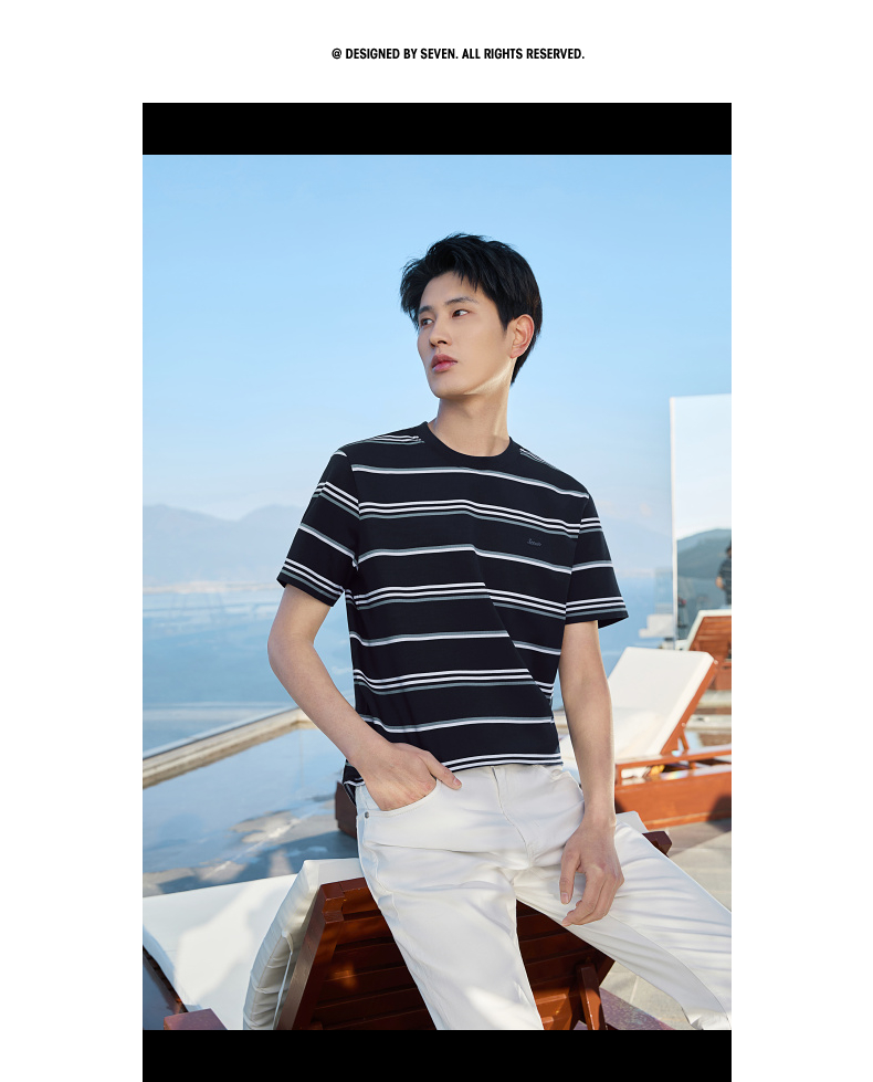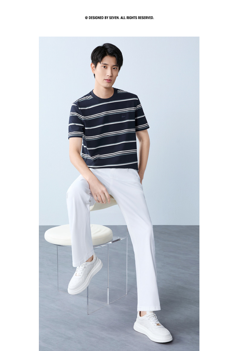【条纹T恤】柒牌男装2026夏季新品经典商务撞色舒适中青年短袖T恤 130T72420