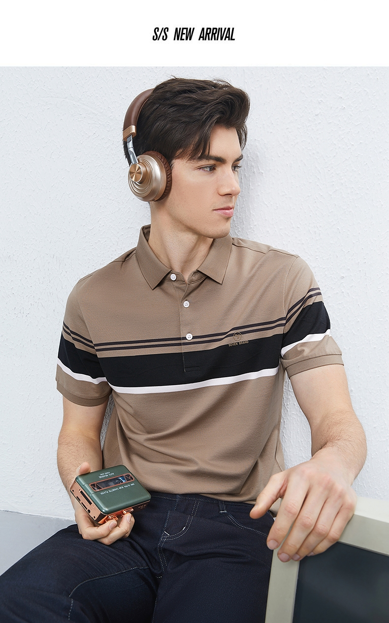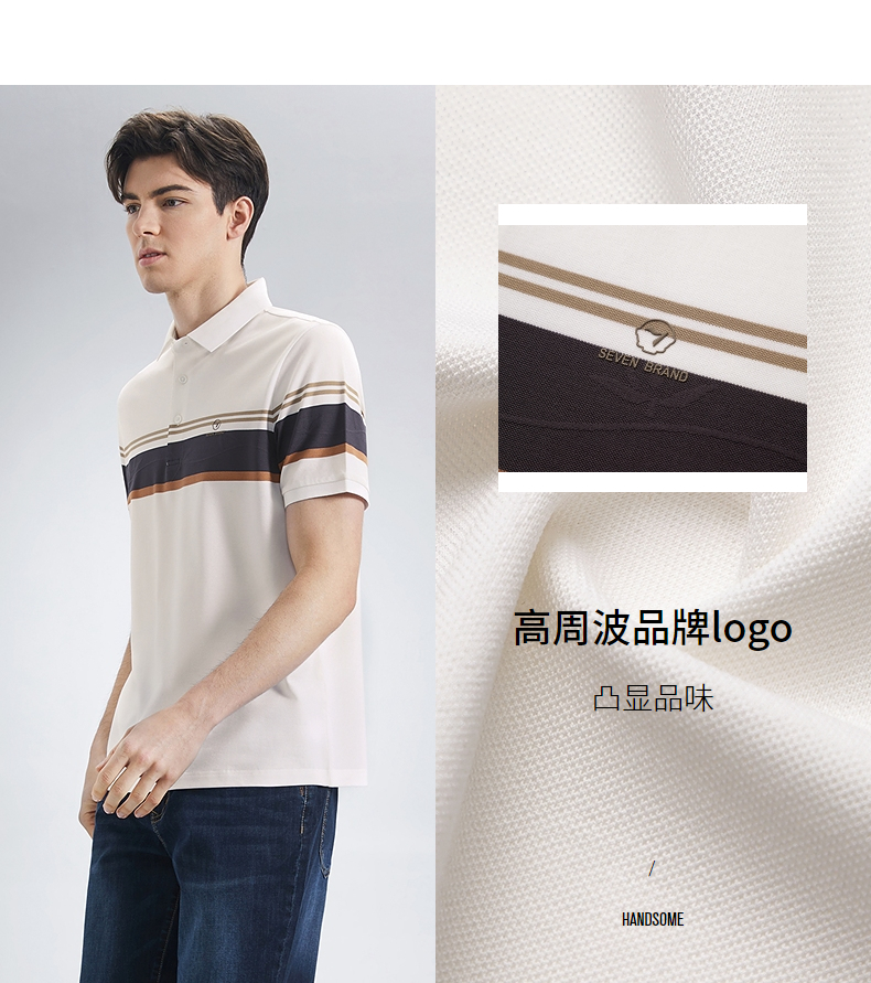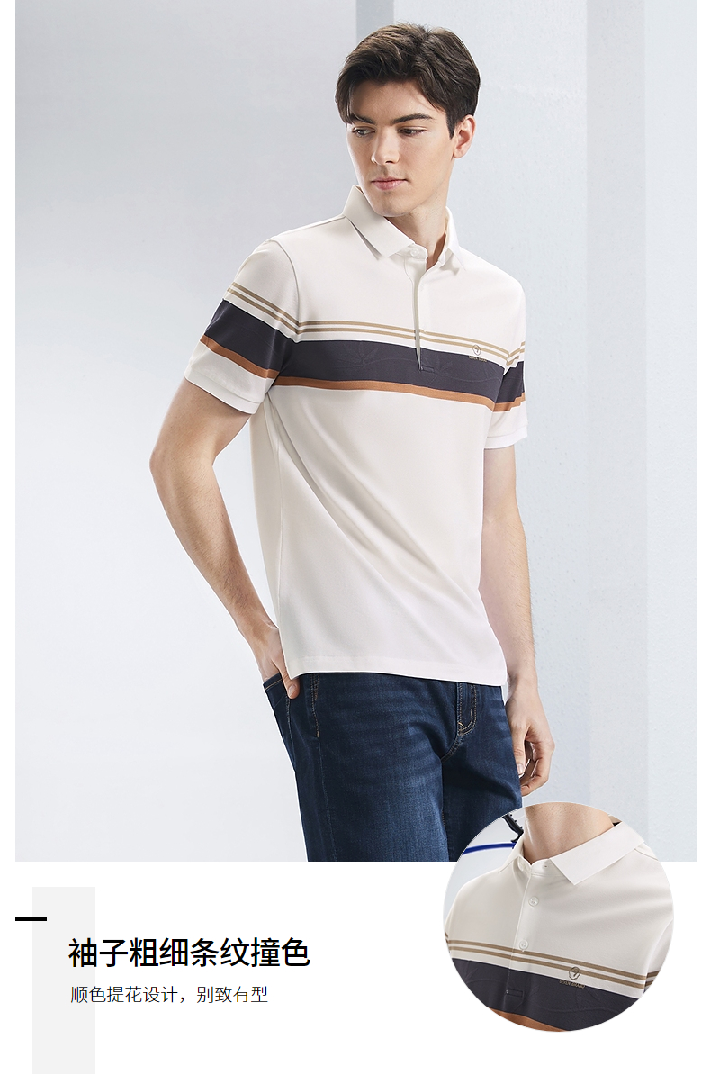 【含桑蚕丝】柒牌polo衫短袖男2024夏季新款撞色条纹透气休闲上衣 126T71220