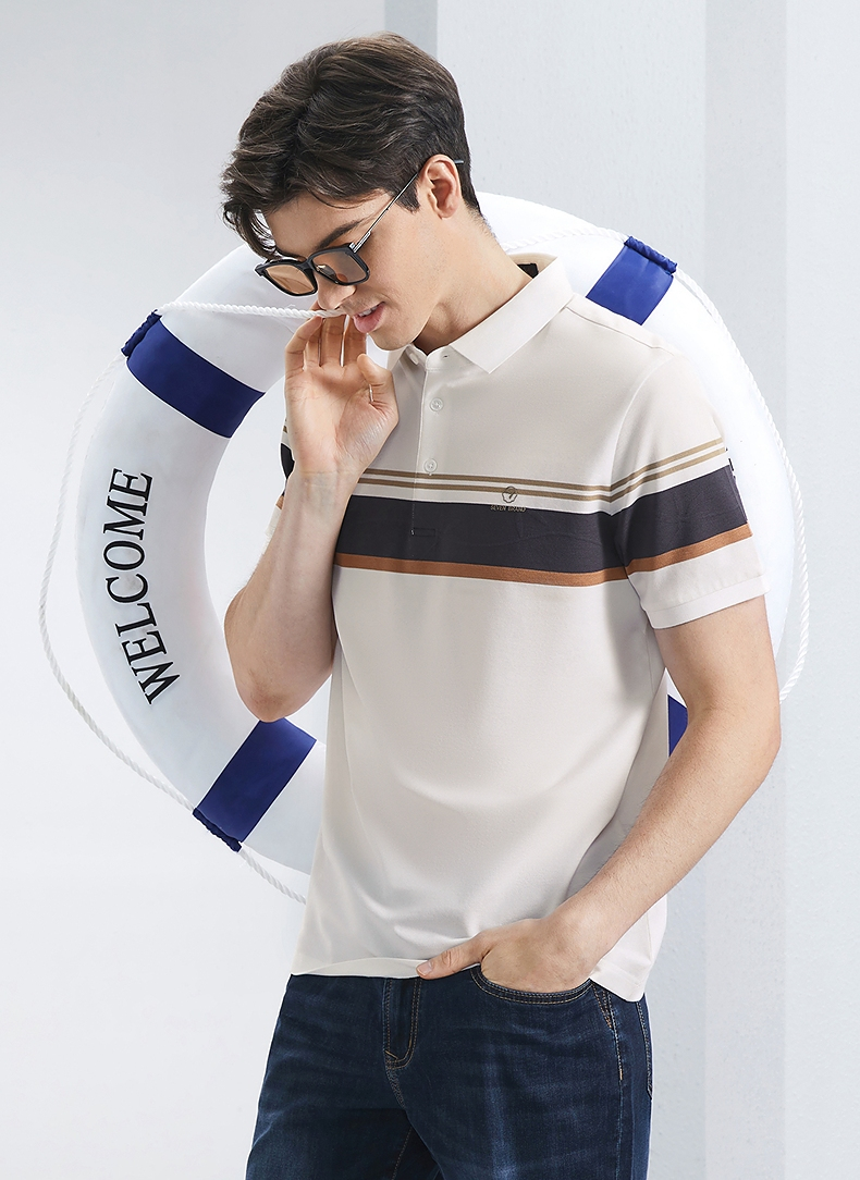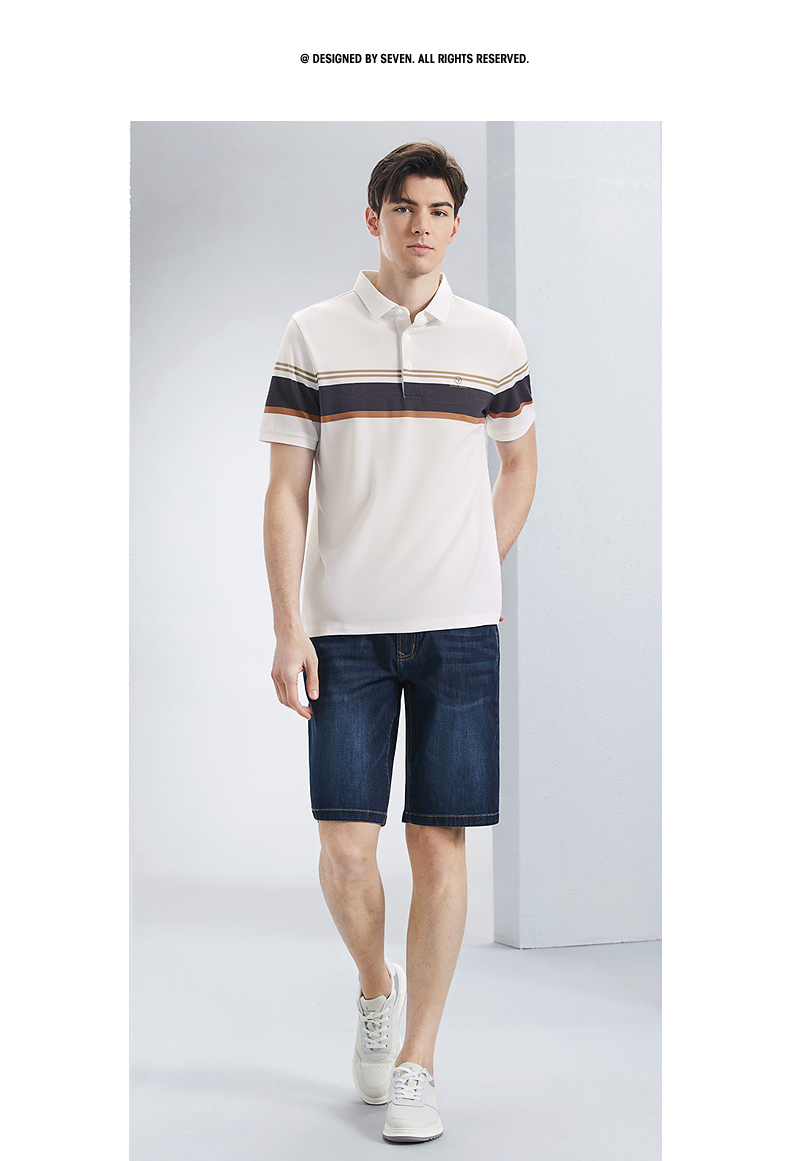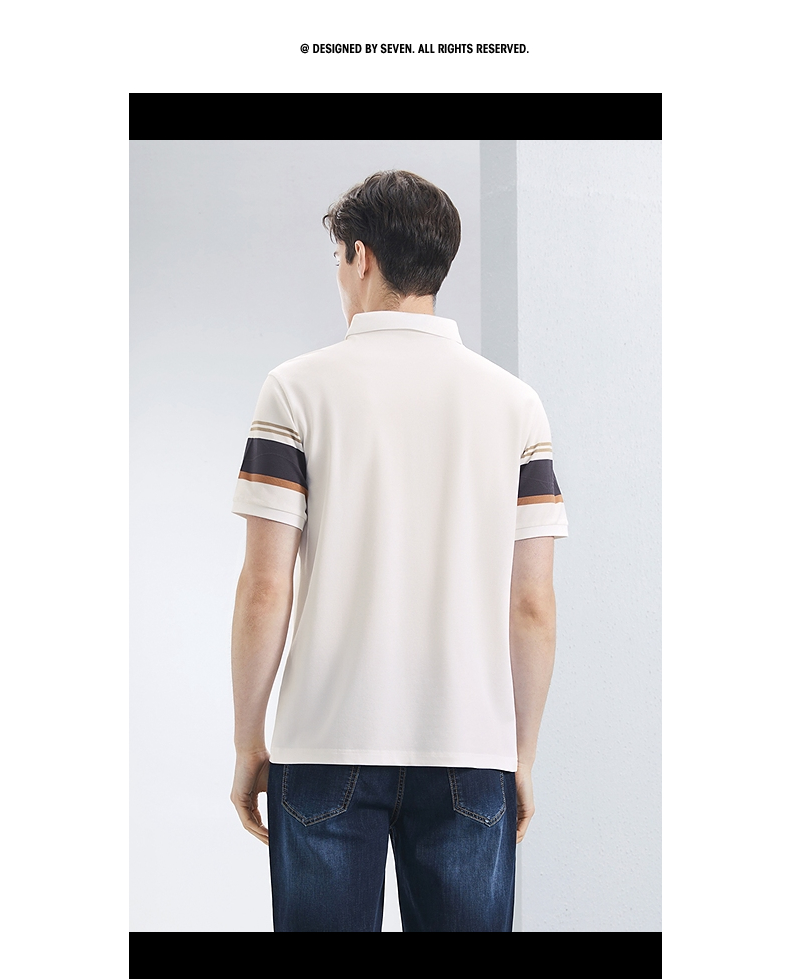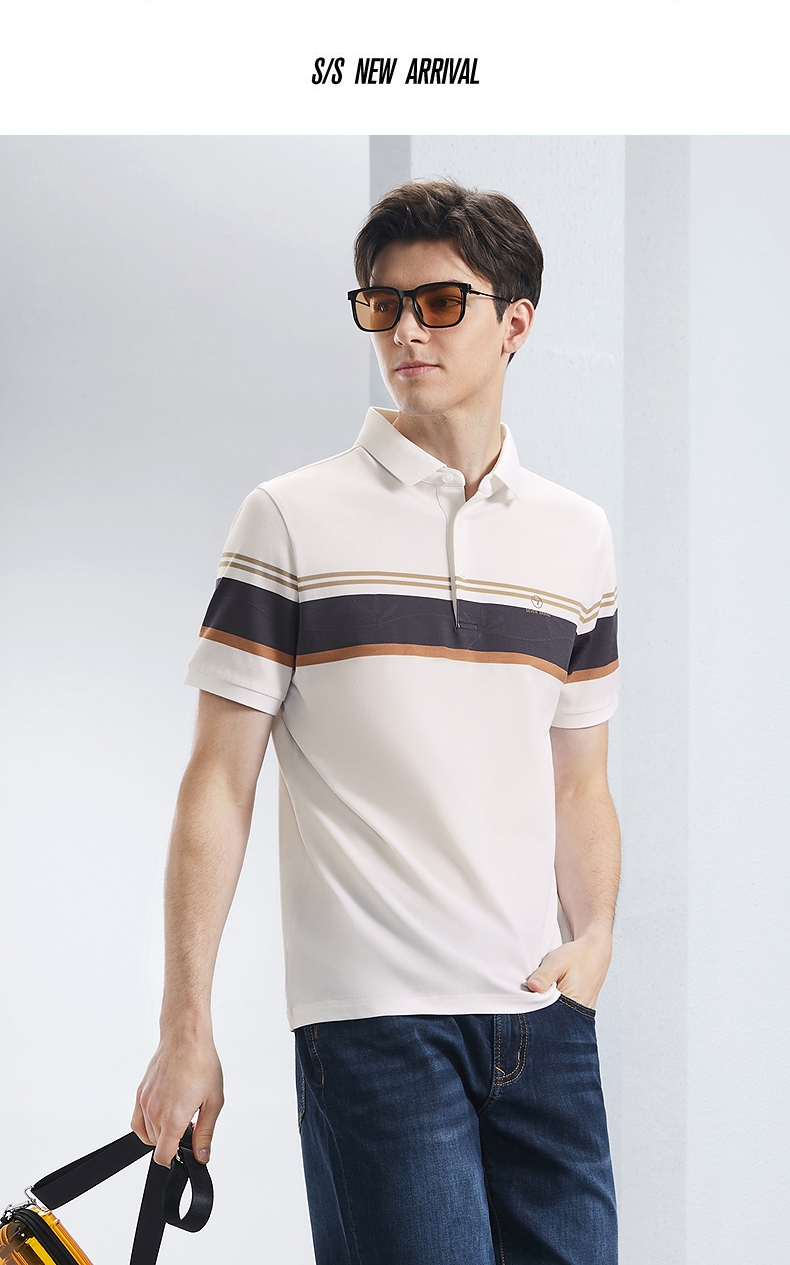 【含桑蚕丝】柒牌polo衫短袖男2024夏季新款撞色条纹透气休闲上衣 126T71220