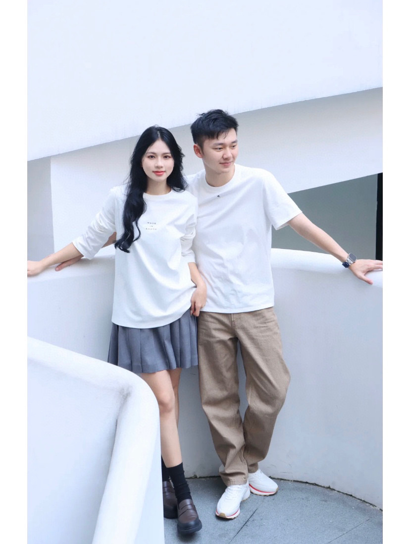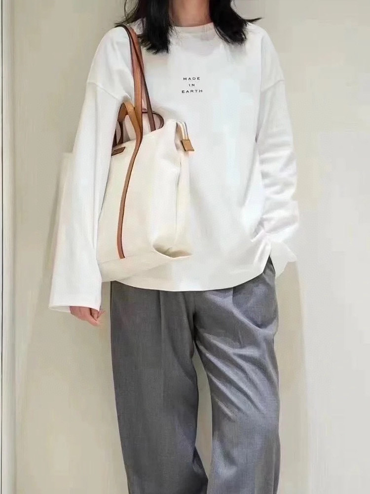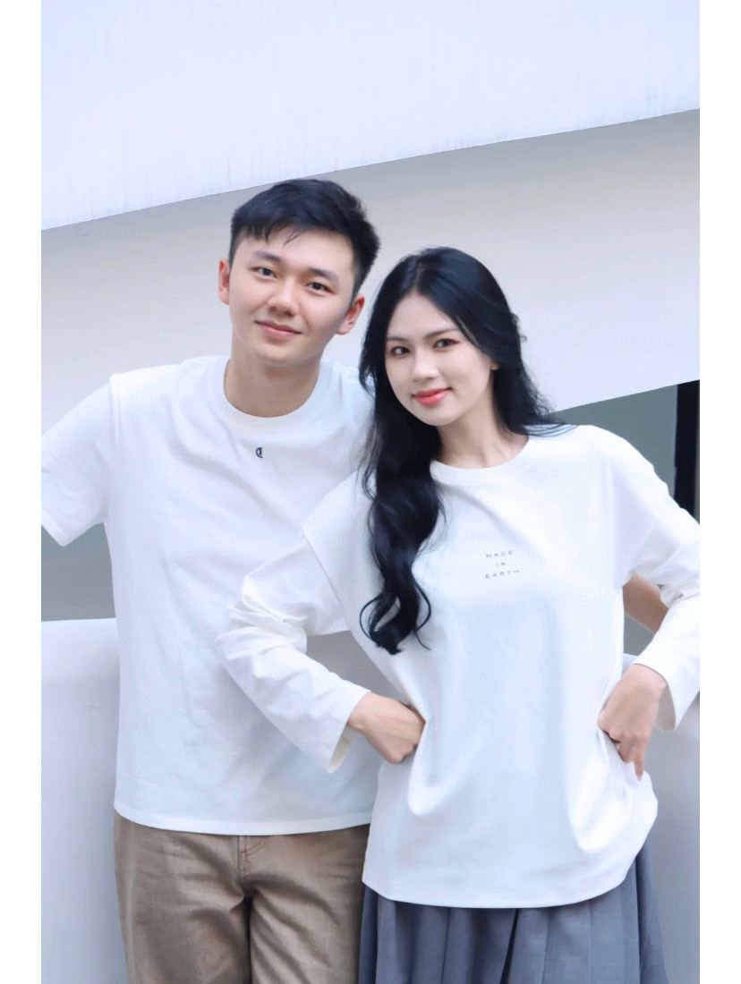 环保棉字母长袖T恤,