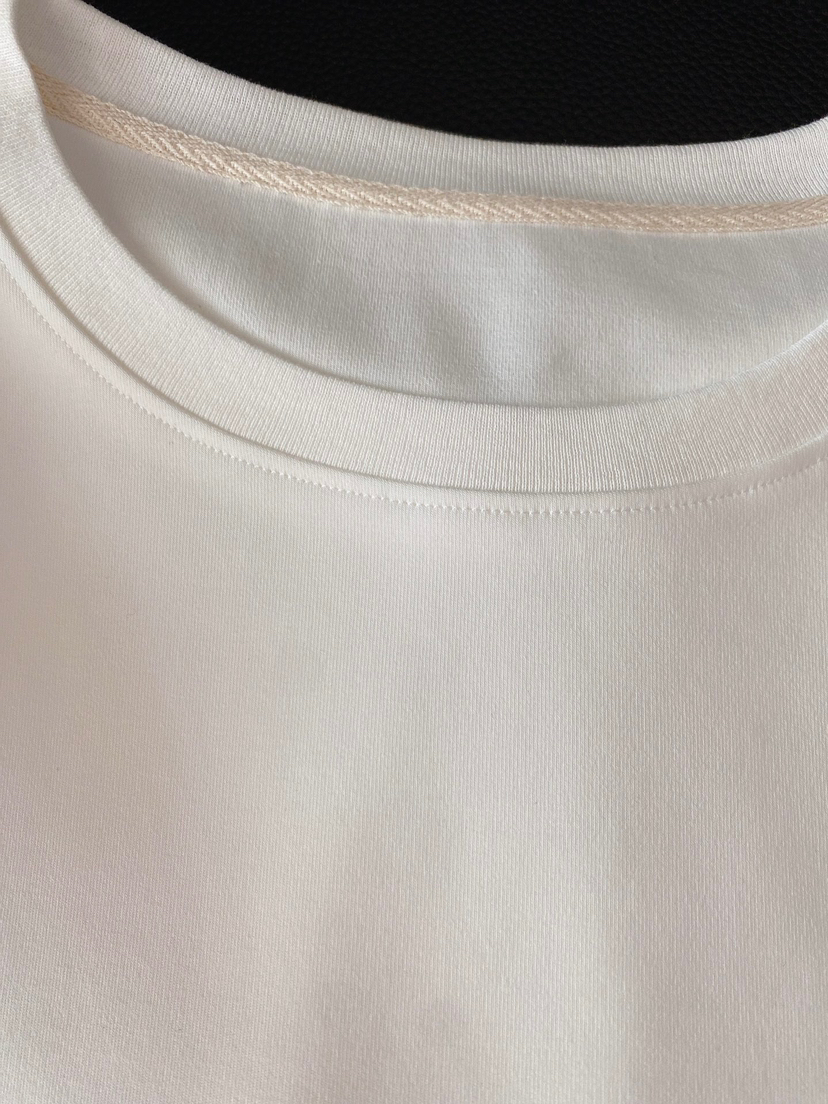 现货实拍。棉纱织成的双面针织布,软糯亲肤,贴身温润,加入弹力纤维,很有牛奶丝的柔软质感,摸着就很柔和,一点都不透,时尚落肩袖、宽松版型,上身舒爽自在,咱们实打实的实拍,看看走线做工,领口不松懈,耐洗涮不易变形。
