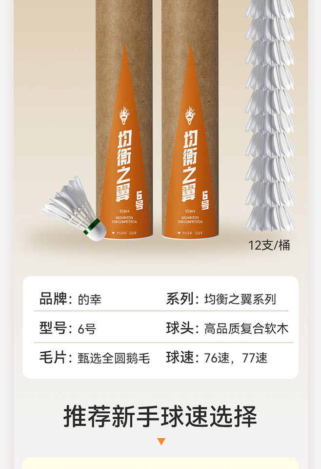 的幸均衡之翼 6 号羽毛球 飞行稳定落点精准训练比赛专用 12 只装