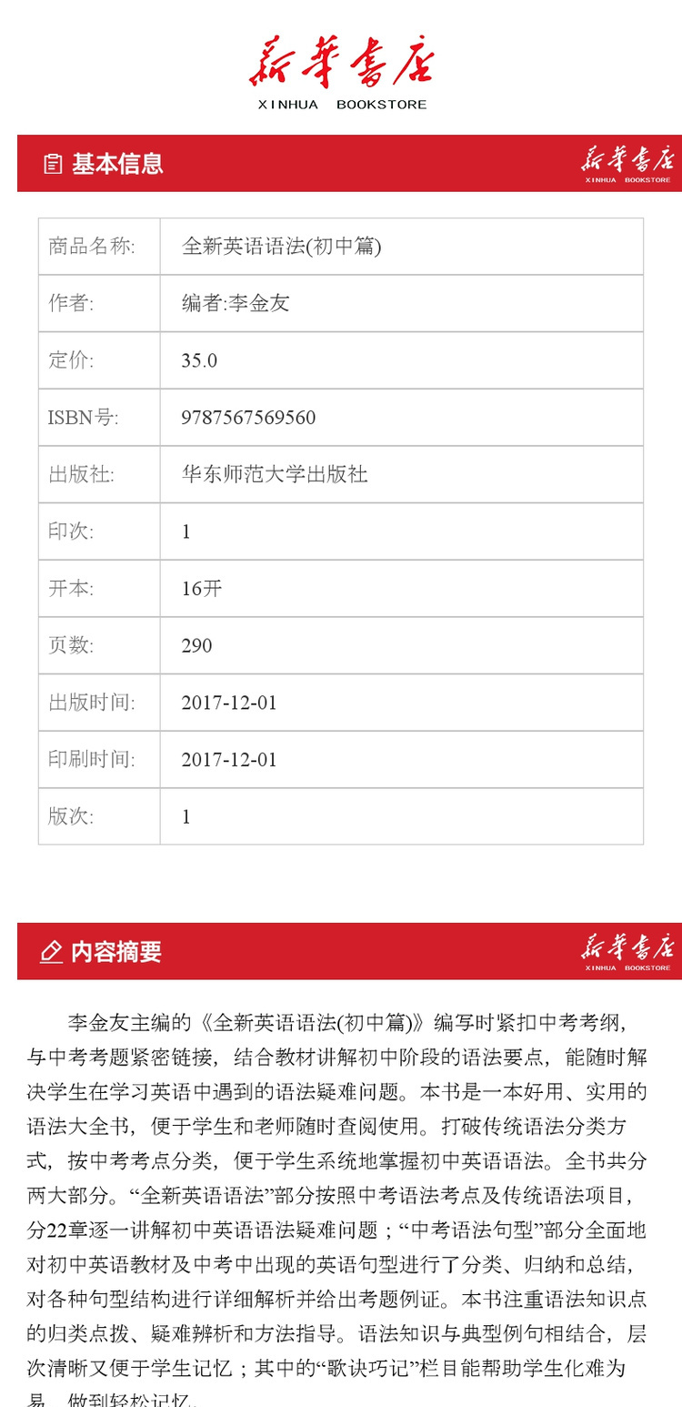 【新华书店旗舰店官网】全新英语语法(初中篇) 专 英语基础知识手册练习教辅资料书专项讲解语法指导学用工具书分类知识点讲解练习