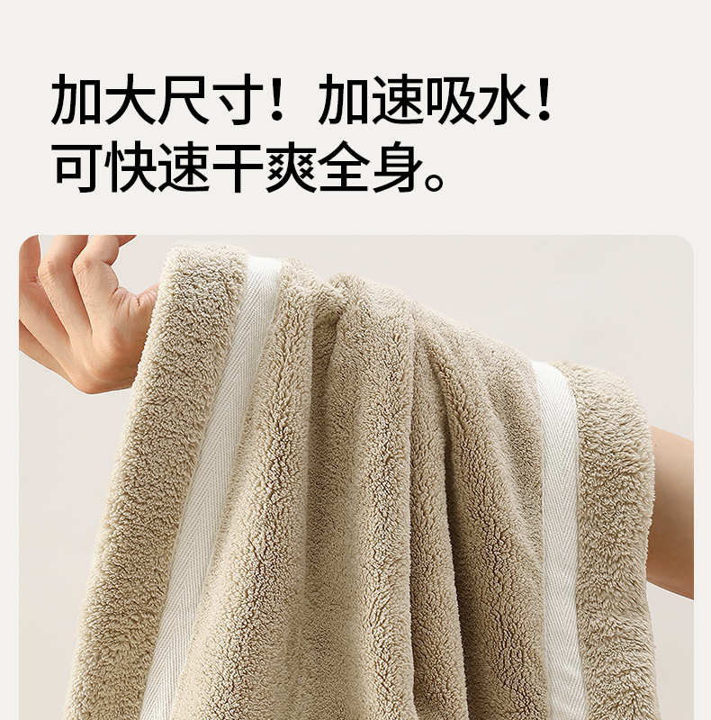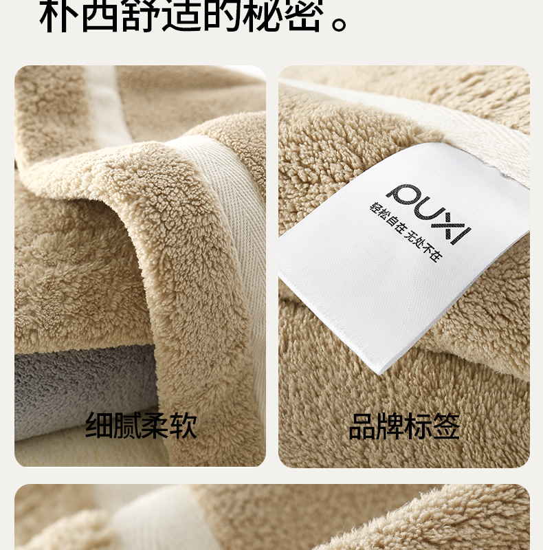 朴西柔雾毛巾加大加厚洗脸家用抗菌成人洗澡柔软吸水毛巾