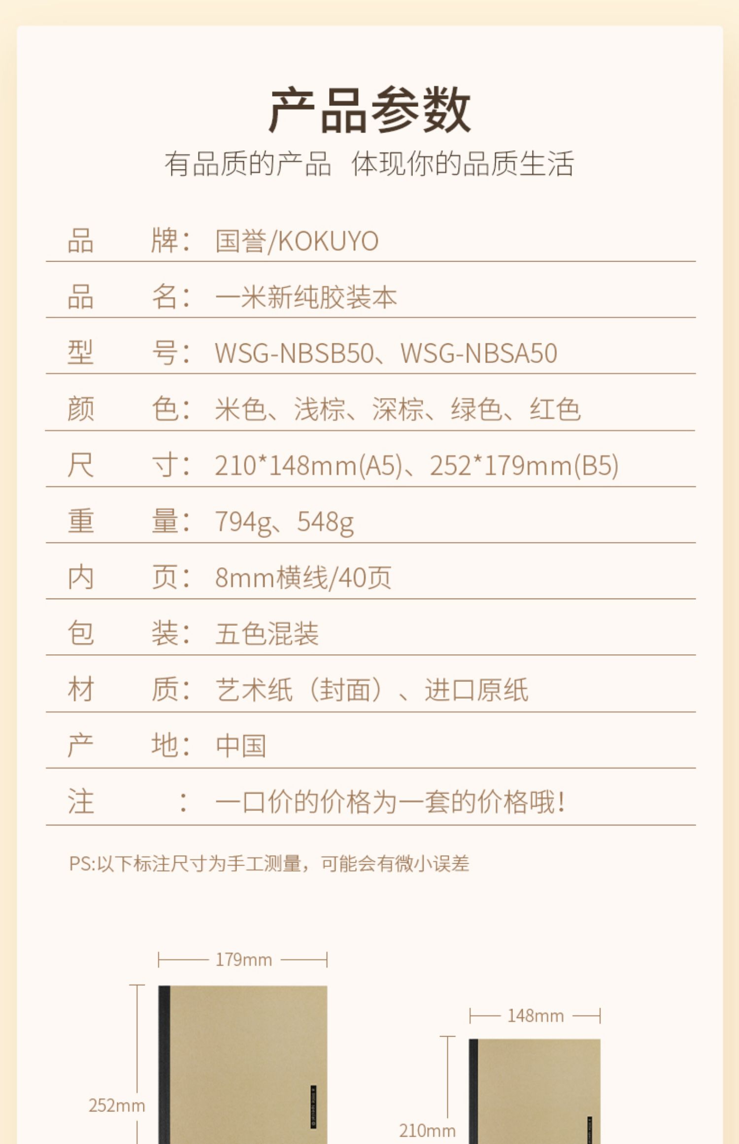 kokuyo国誉一米新纯系列无线装订本NBSA540日系清新复古记事本日记本学生文具笔记本五本套装A5/B5