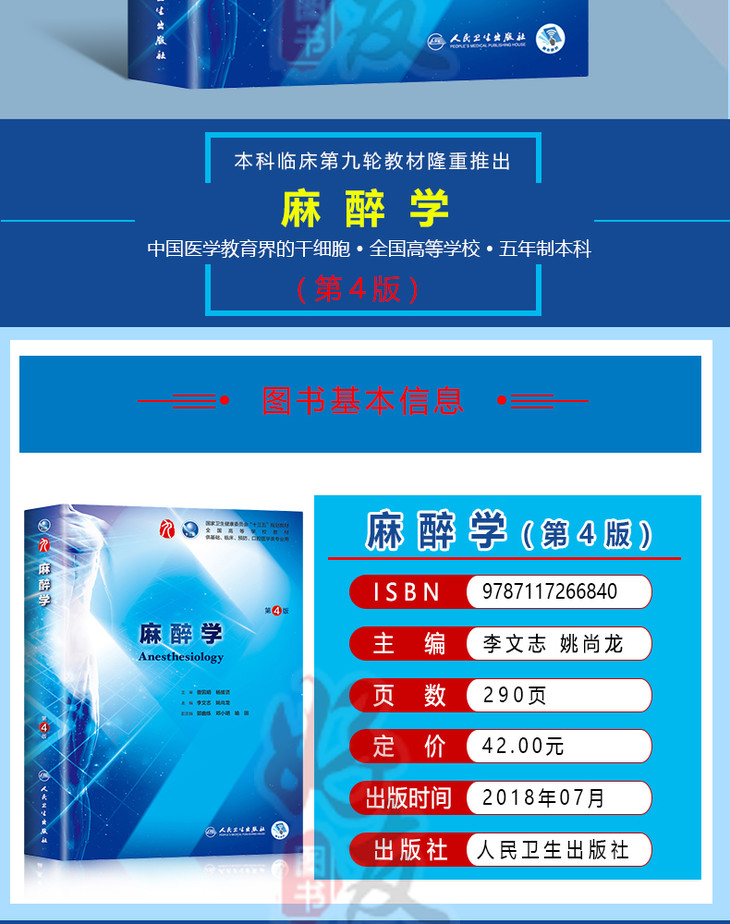 麻醉学第4四版人卫版 第九轮 李文志 姚尚龙主编 本科临床西医教材 人民卫生出版社 麻醉学第3三版升级教材9787117266840