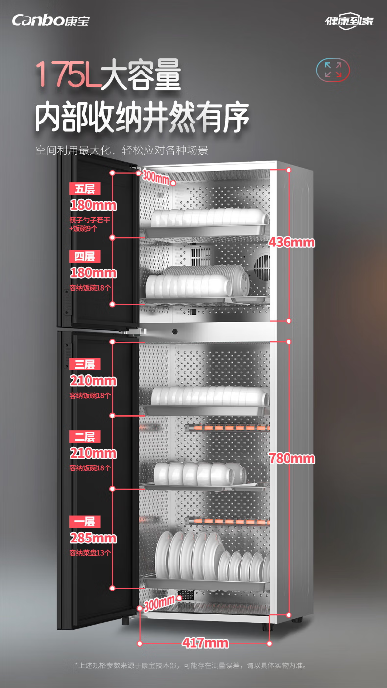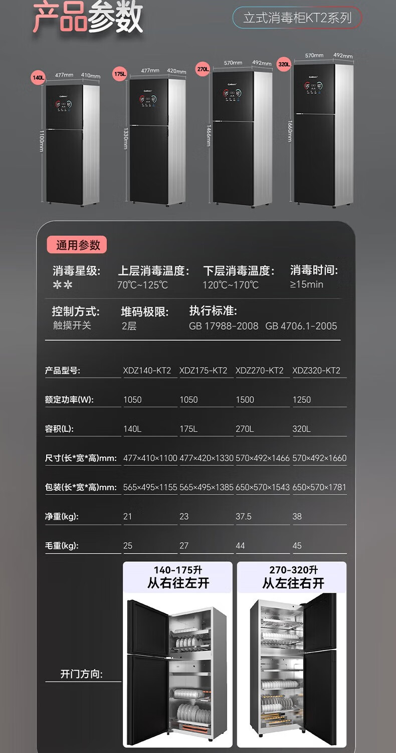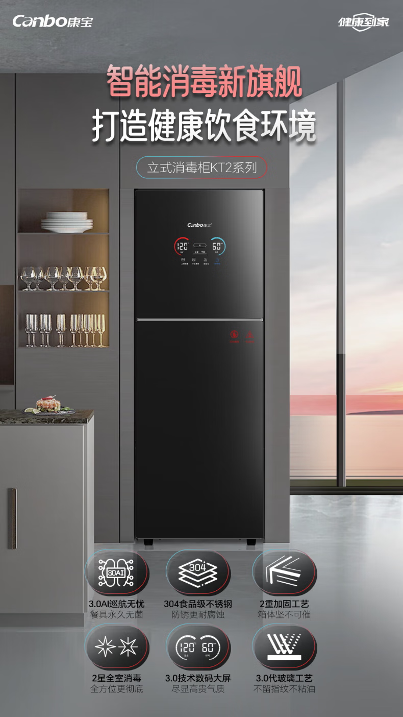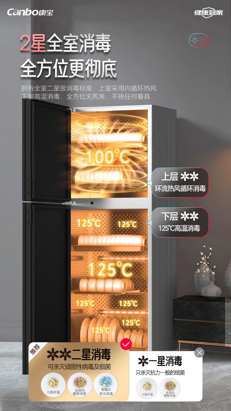 康宝(Canbo)消毒柜 AI智能 304不锈钢板架 智能暖盘功能 上下全二星级 家用消毒碗柜 高端别墅公寓碗柜KT2 二星级140L/175L/270L/320L 丨升级新款丨304不锈钢板架