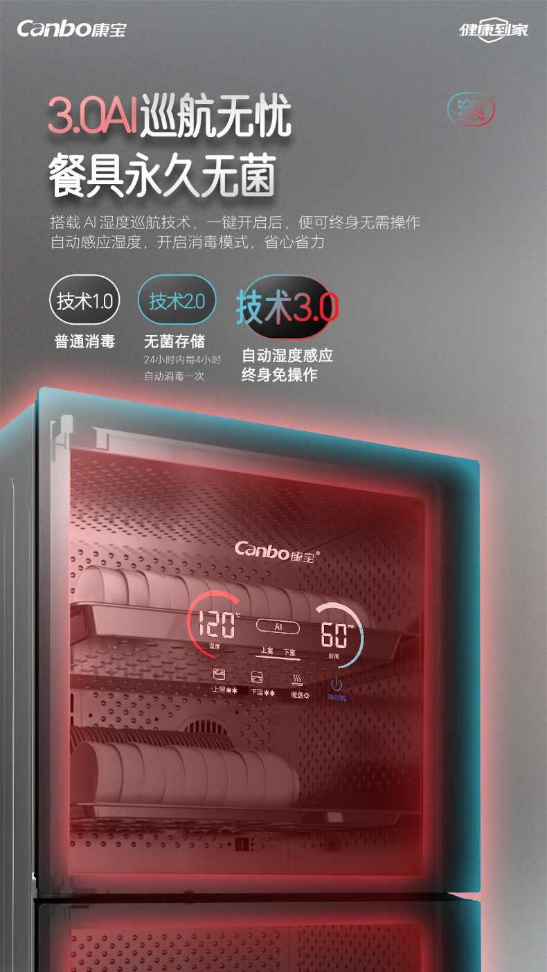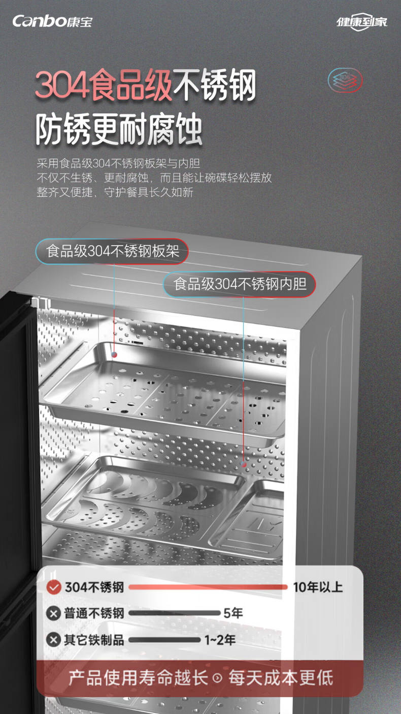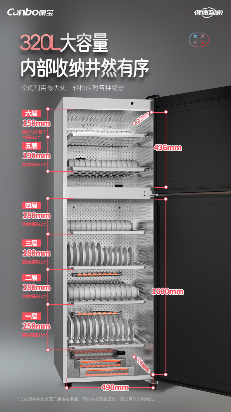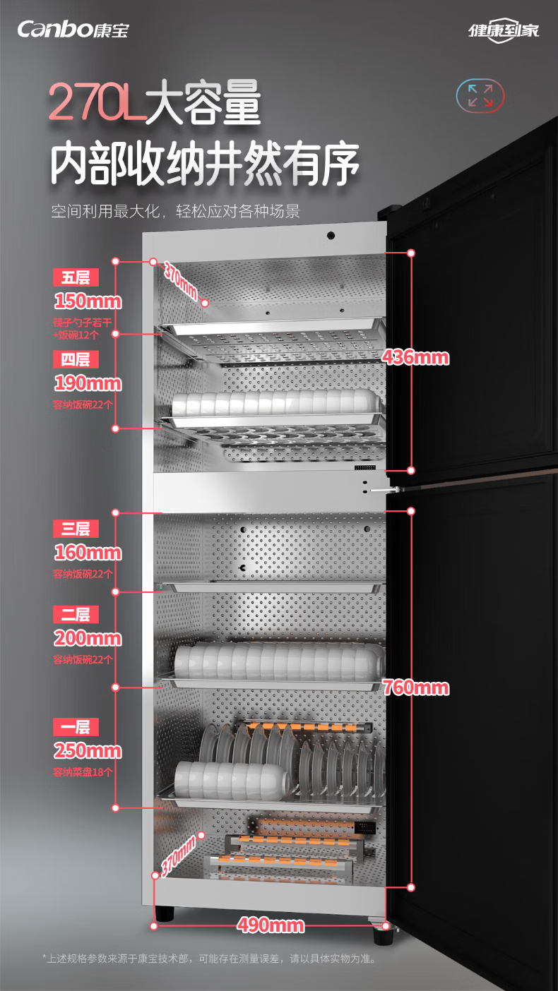 康宝(Canbo)消毒柜 AI智能 304不锈钢板架 智能暖盘功能 上下全二星级 家用消毒碗柜 高端别墅公寓碗柜KT2 二星级140L/175L/270L/320L 丨升级新款丨304不锈钢板架