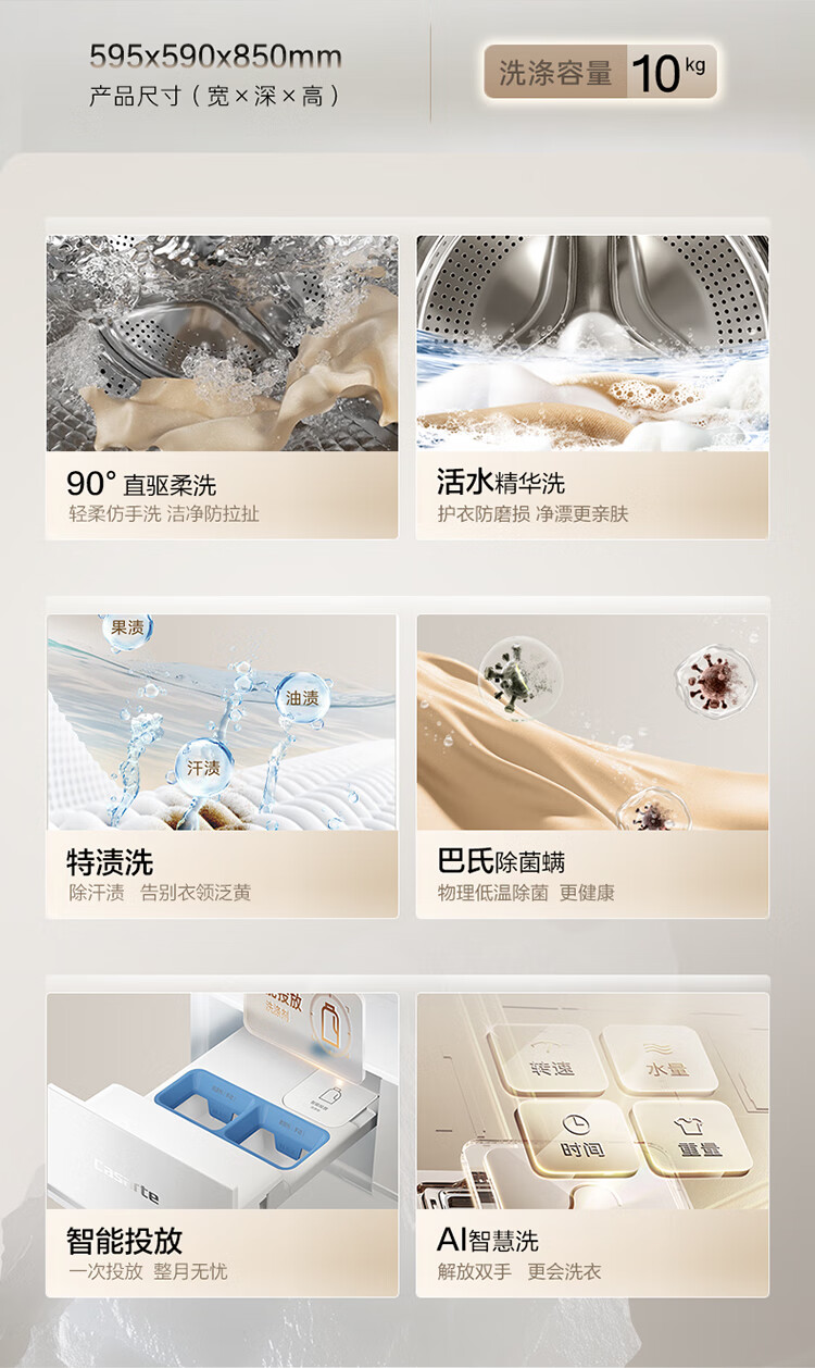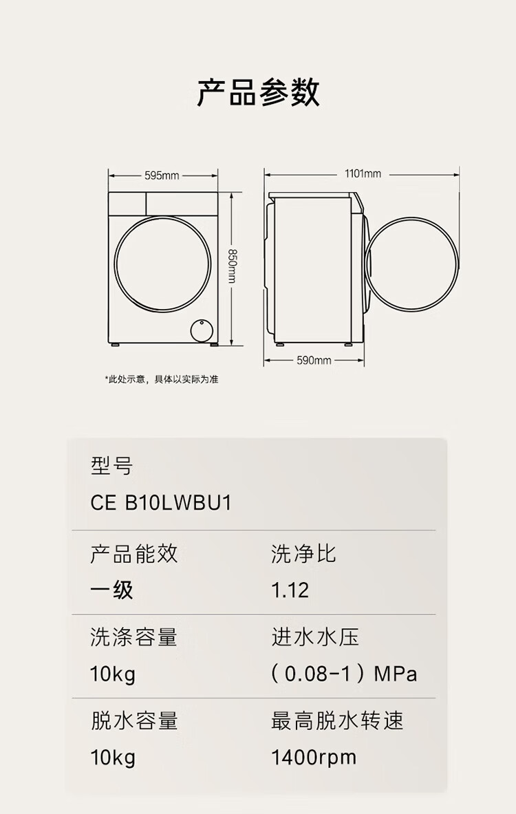 卡萨帝(Casarte)揽光WB滚筒单洗10KG 洗衣机全自动 直驱精华洗 CE B10LWBU1