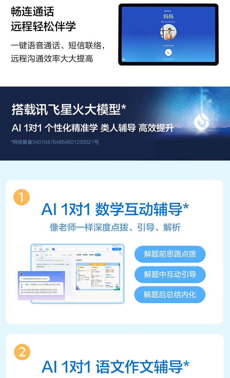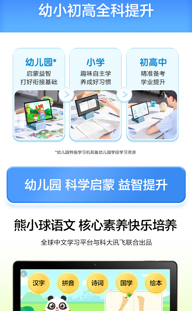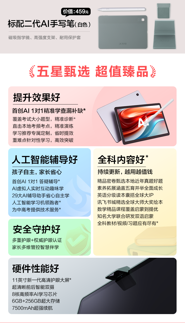 【科大讯飞】人工智能学习机P30 5G版 6+128G 小学初中高中通用大屏护眼 护眼平板 AI精准学