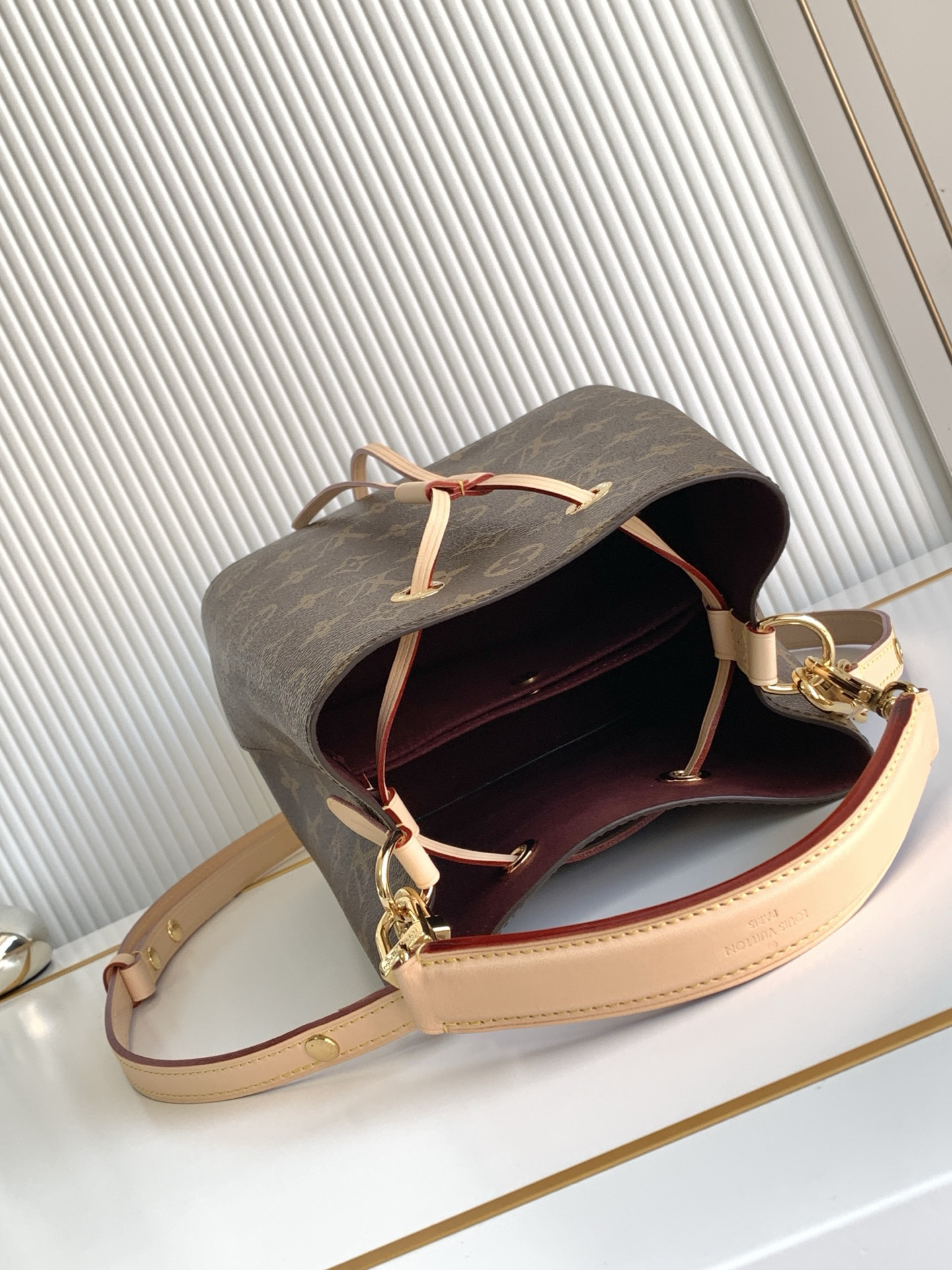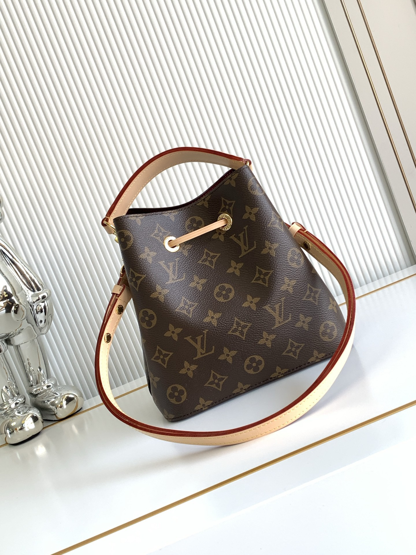 秋冬特惠💰1200 渠道级LV【全钢五金 MB163c01变码芯片】te级LV 全套包装 M46581老花 迷你水桶包系列 NÉONOÉ BB手袋