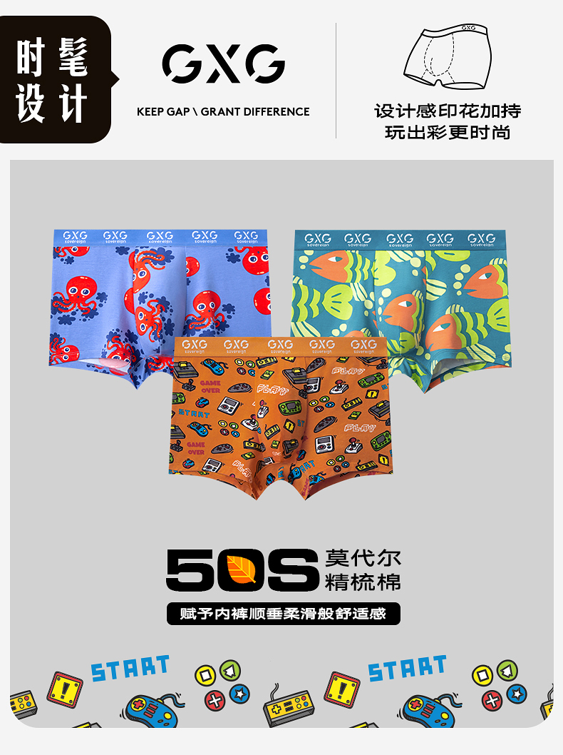 GXG内裤 【单条装】棉质莫代尔印花内裤男个性短裤潮