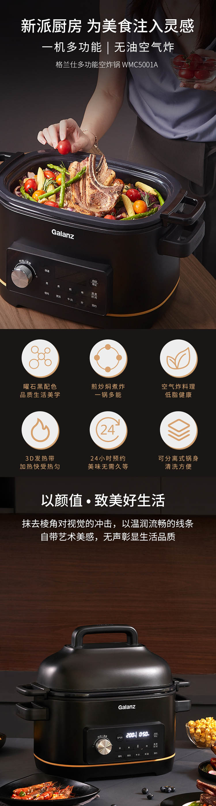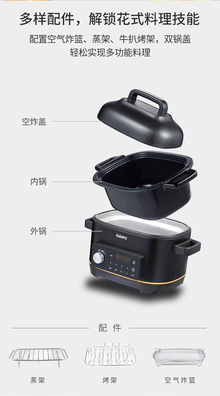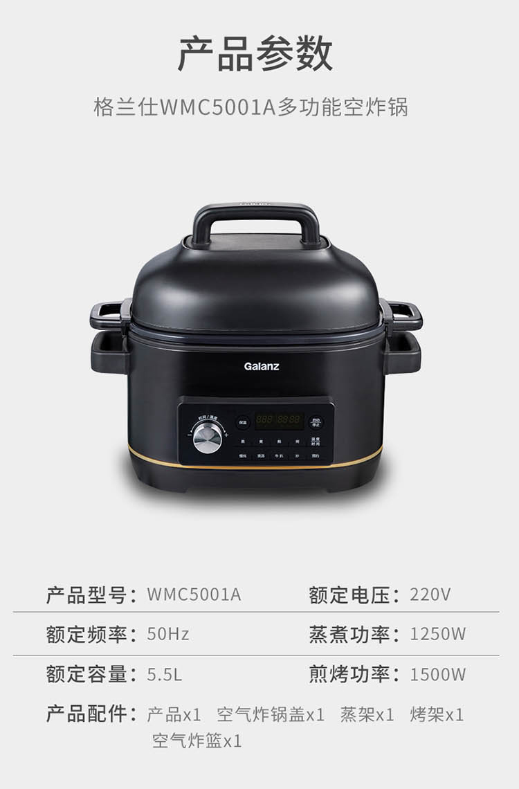 【领券】格兰仕多功能锅 空气炸锅 煮锅 煎炸 炖锅 烧烤 电蒸锅WMC5001A