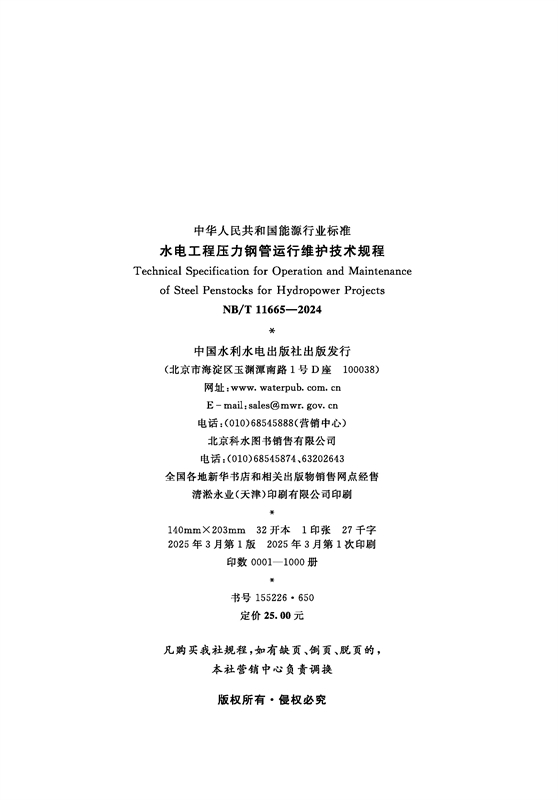 水电工程压力钢管运行维护技术规程(NB/T 11665—2024)