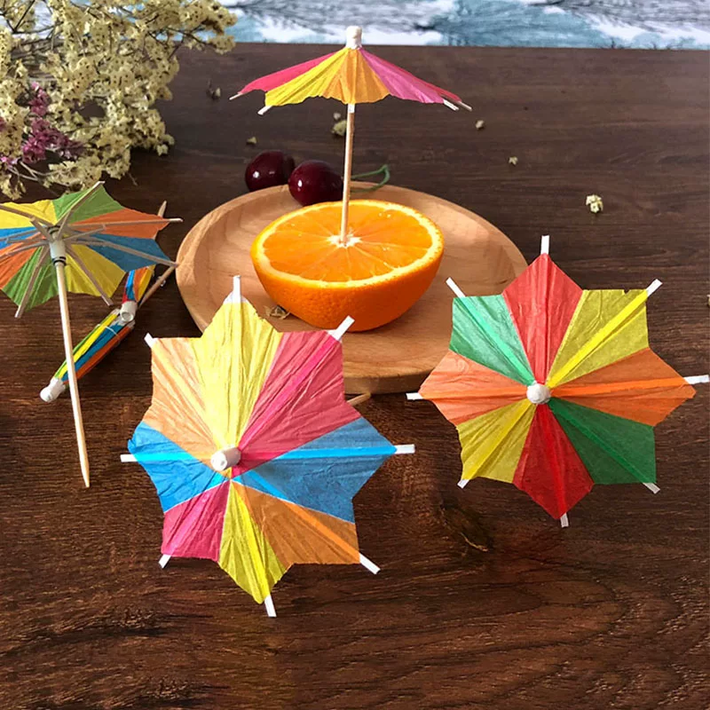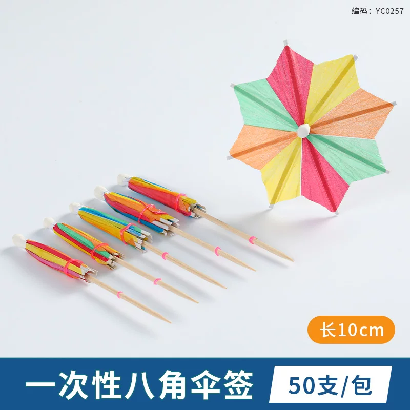 50个/包 一次性小雨伞插件 装饰伞签 小伞八角伞插件 鸡尾酒甜品装饰伞签