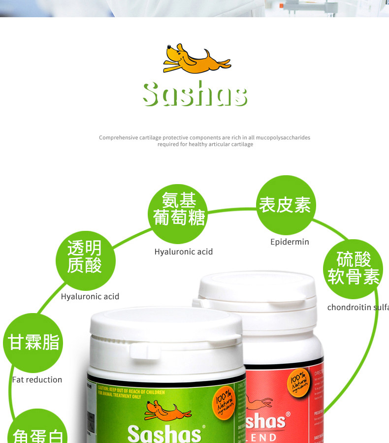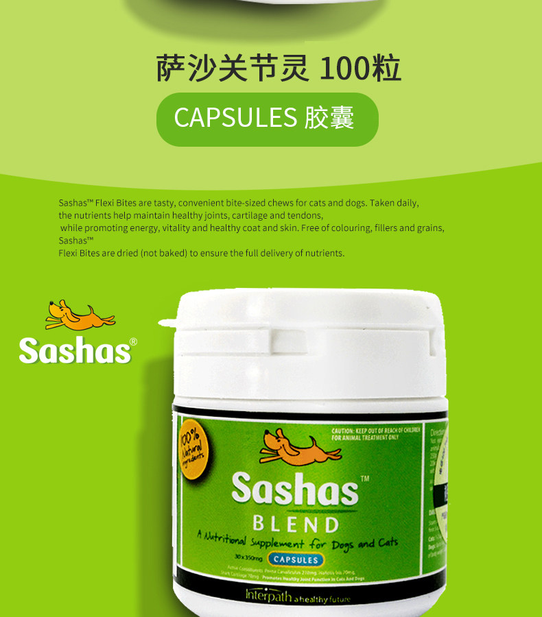 sashas萨沙软骨素猫关节粉折耳猫鲨鱼软骨素胶囊宠物关节灵猫专用