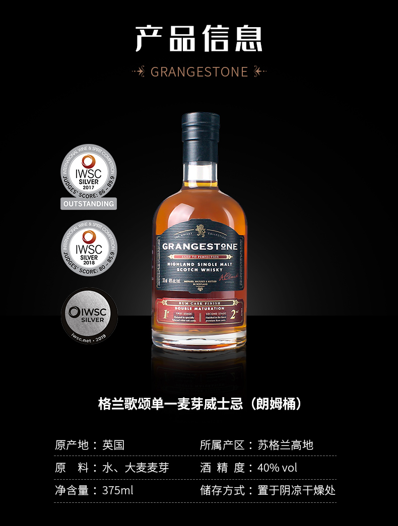 40°格兰歌颂单一麦芽威士忌(朗姆桶)375ml