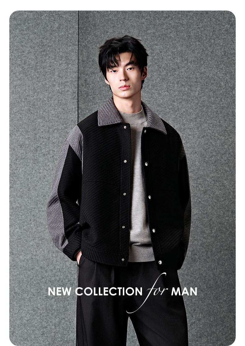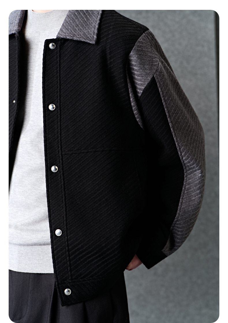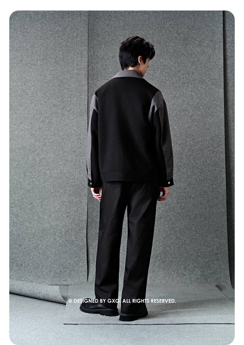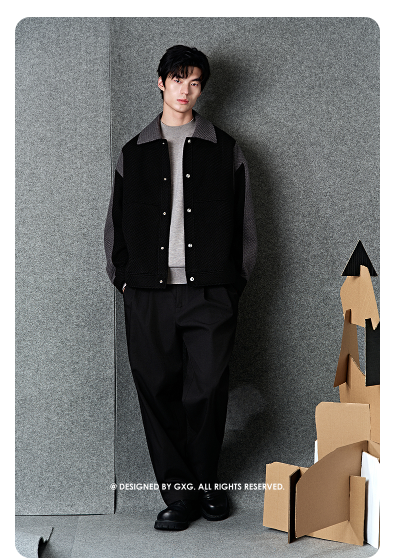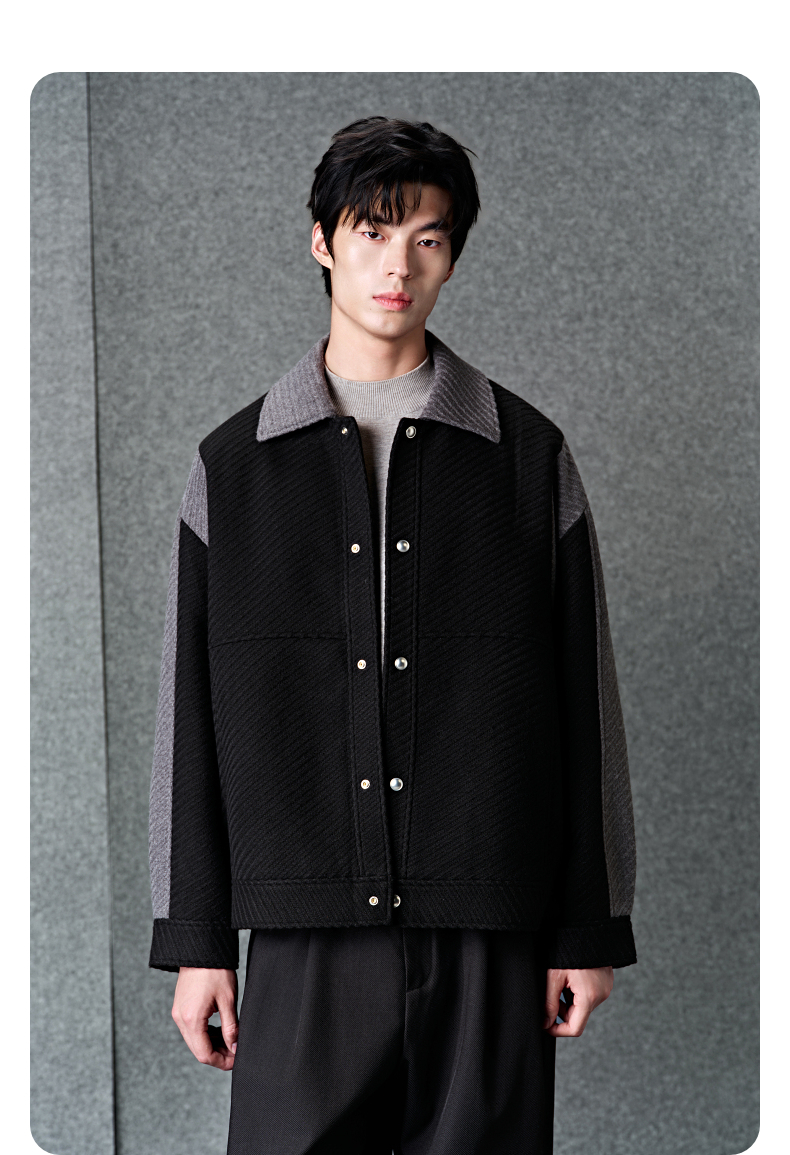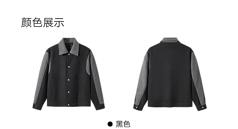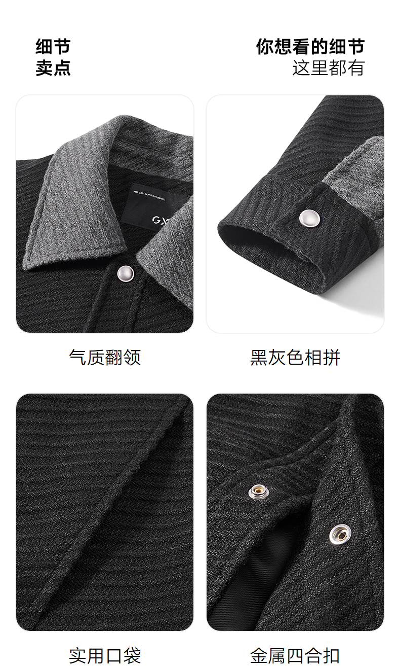 GXG男装 黑色拼接设计时尚高级短款大衣外套男士 冬季热卖