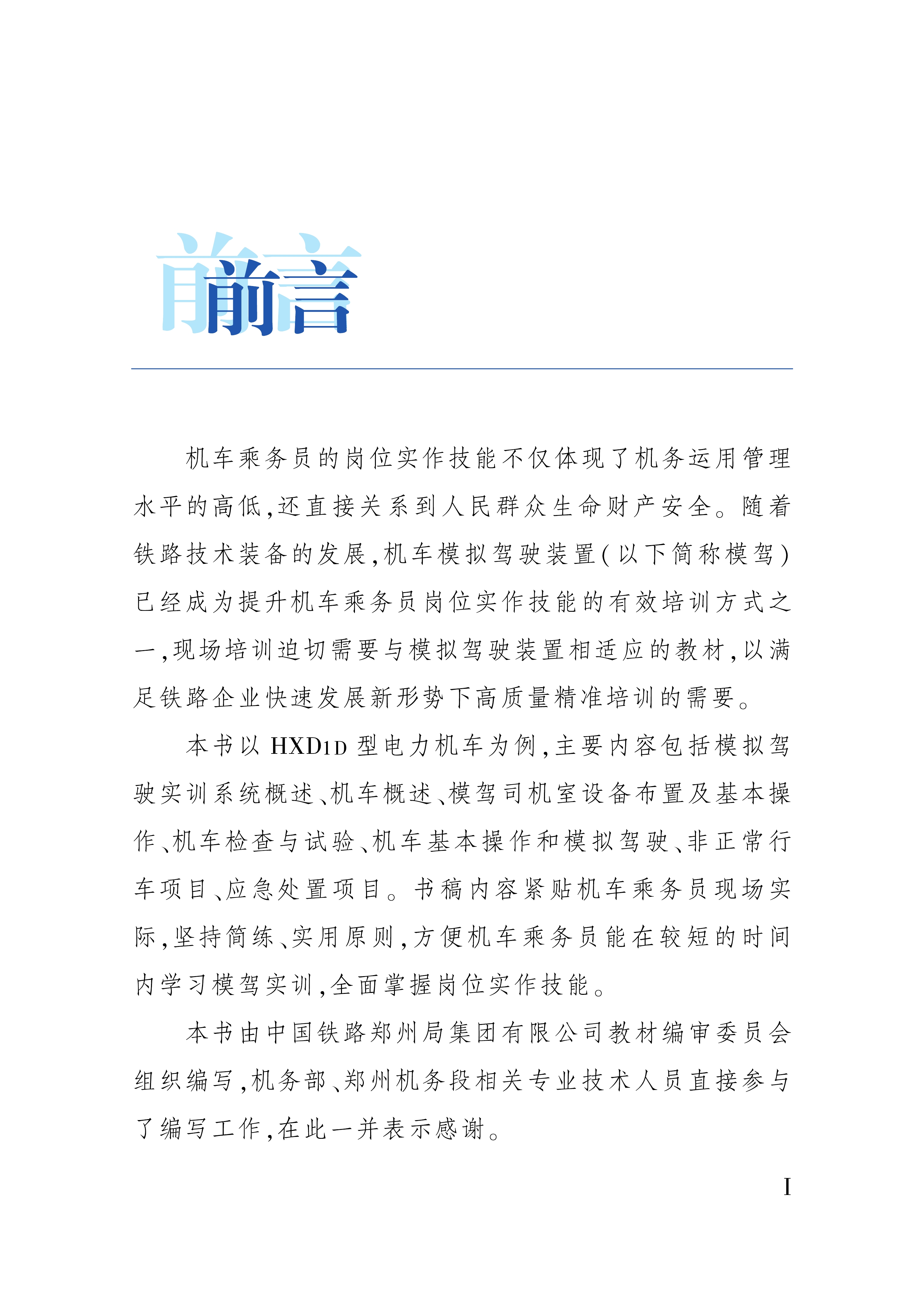 本书以HXD1D型电力机车为例,按照培训规范要求进行编写,紧贴机车乘务员现场实际,坚持简炼、实用原则,主要侧重机车乘务员日常实作技能演练、模拟驾驶设备布置及基本操作方法,同时突出机车乘务员应急故障处理、非正常情况下行车应急处置等模架实训内容,以便机车乘务员能用较短的时间内通过模驾实训,全面掌握岗位实作技能。全书共分七章,内容包括:机车概述、模驾司机室设备布置及基本操作、机车检查与试验、机车基本操作和模拟驾驶、非正常行车项目、应急处置项目、模驾设备概述。