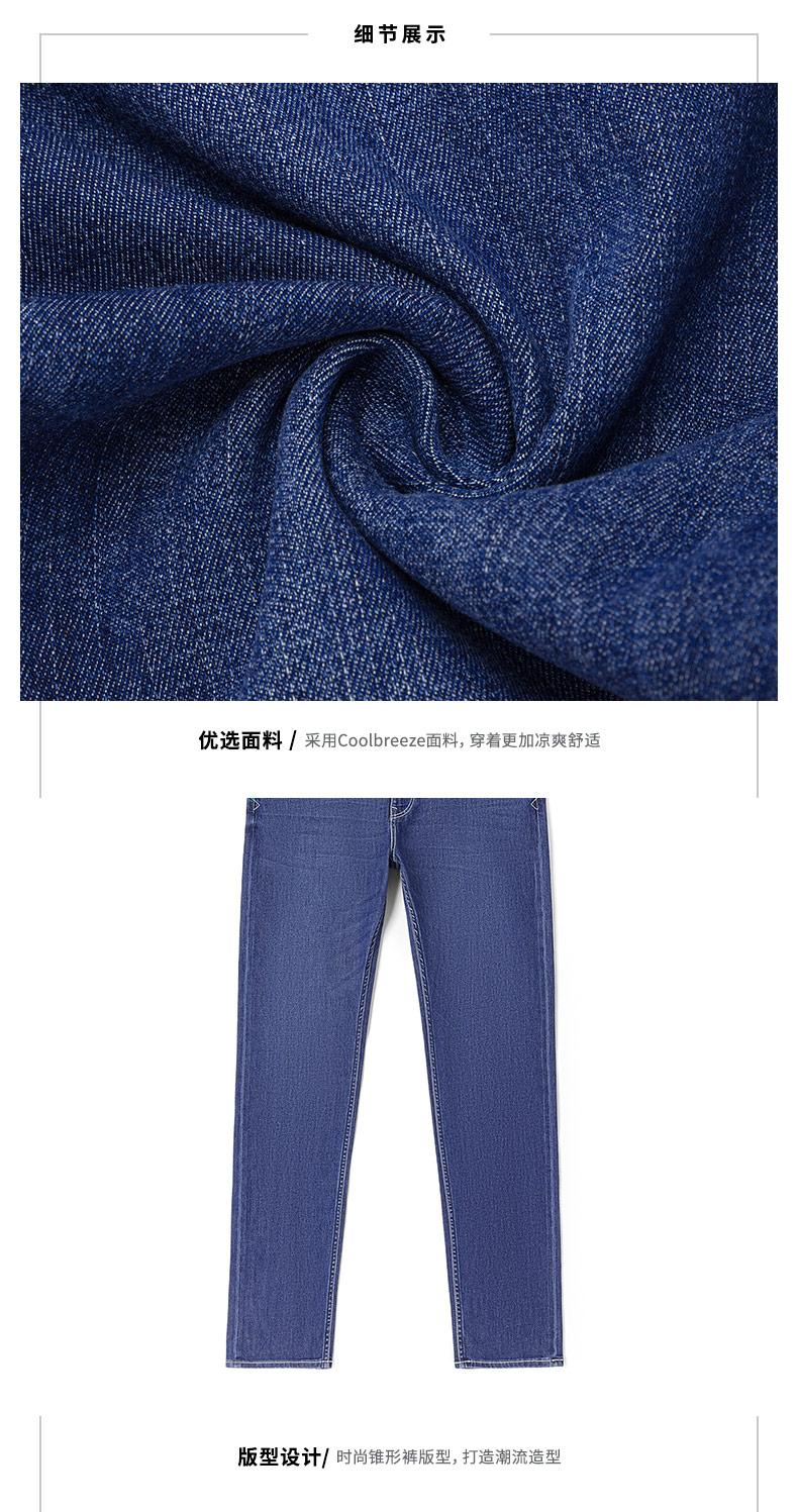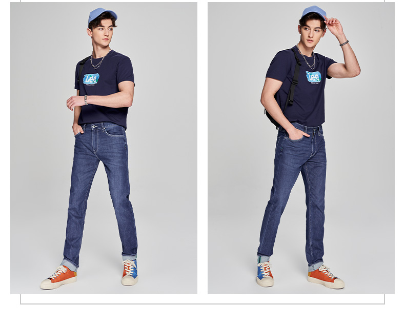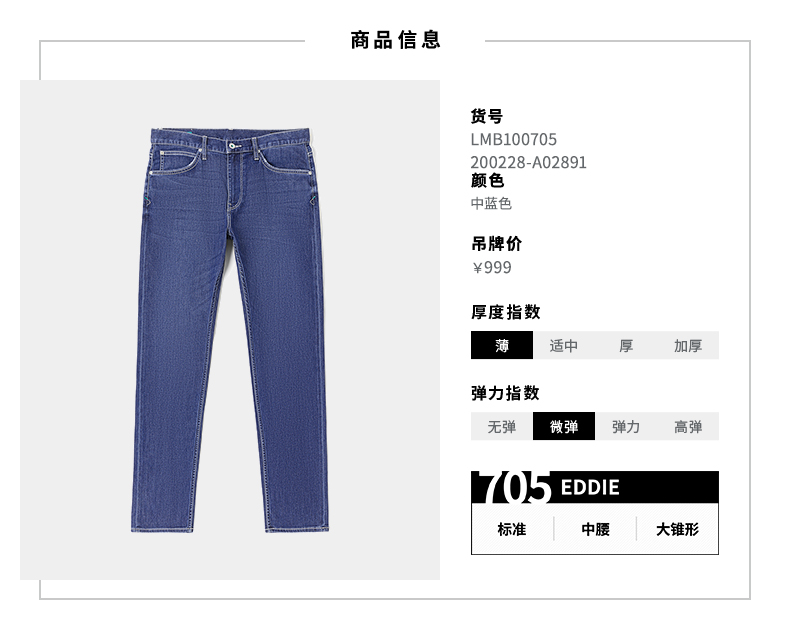 LEE 新品705标准大锥形凉感中蓝色男牛仔裤凉凉裤潮LMB100705200228A02891