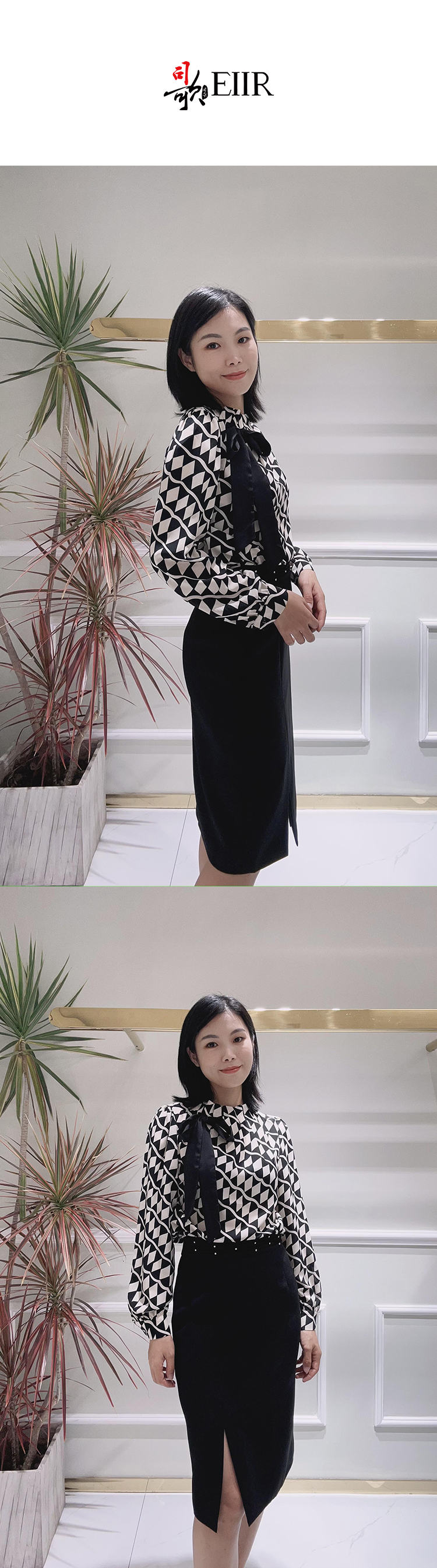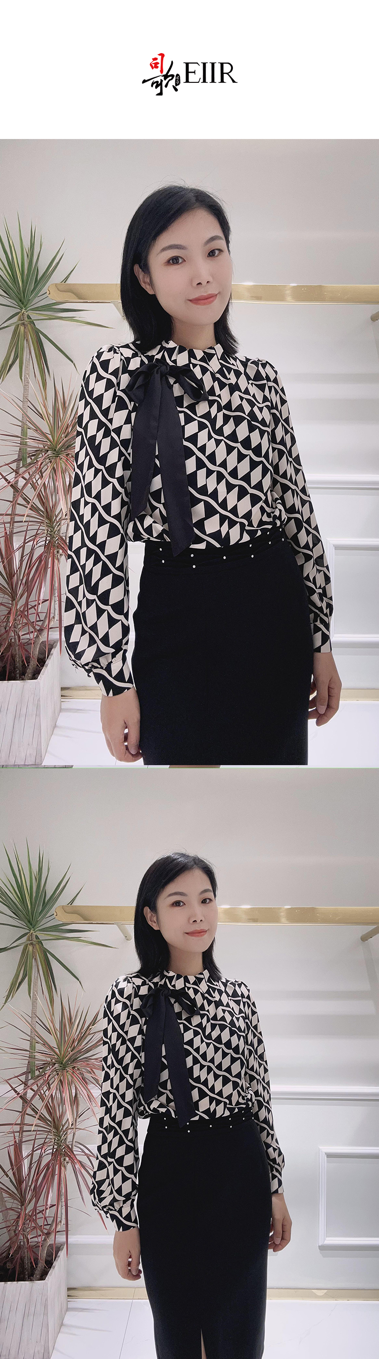 EIIR司歌职场印花几何长袖小立领衬衫T88G8696