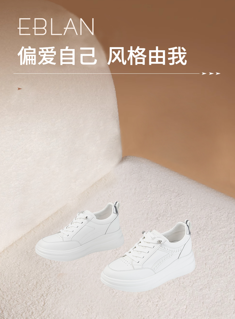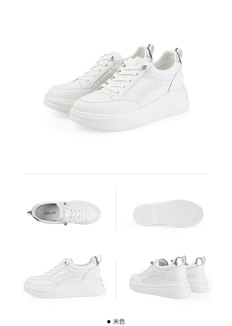 【上新】伊伴2026春季时尚编织设计休闲百搭增高小白鞋B26189560