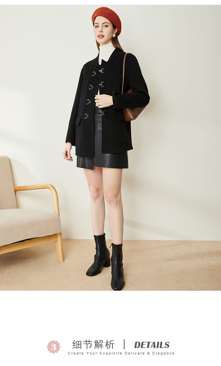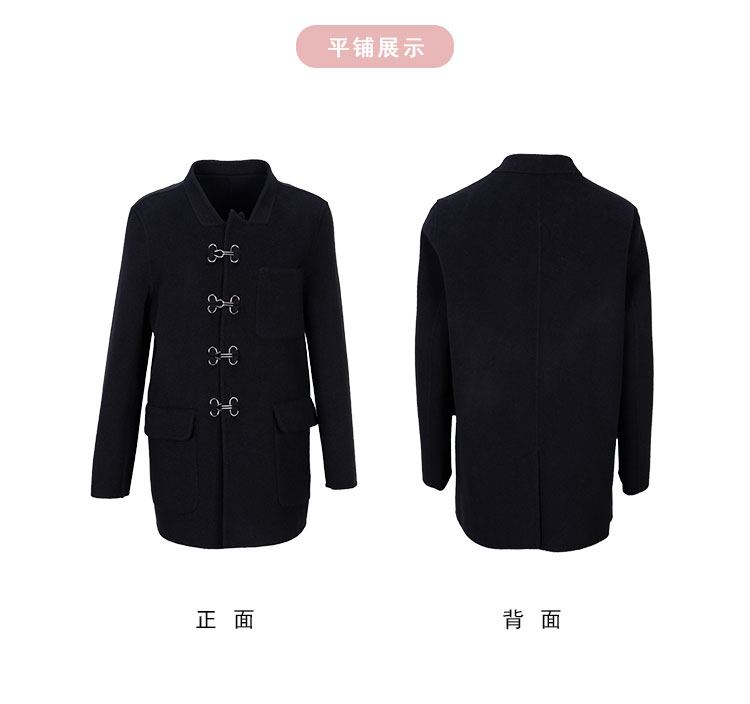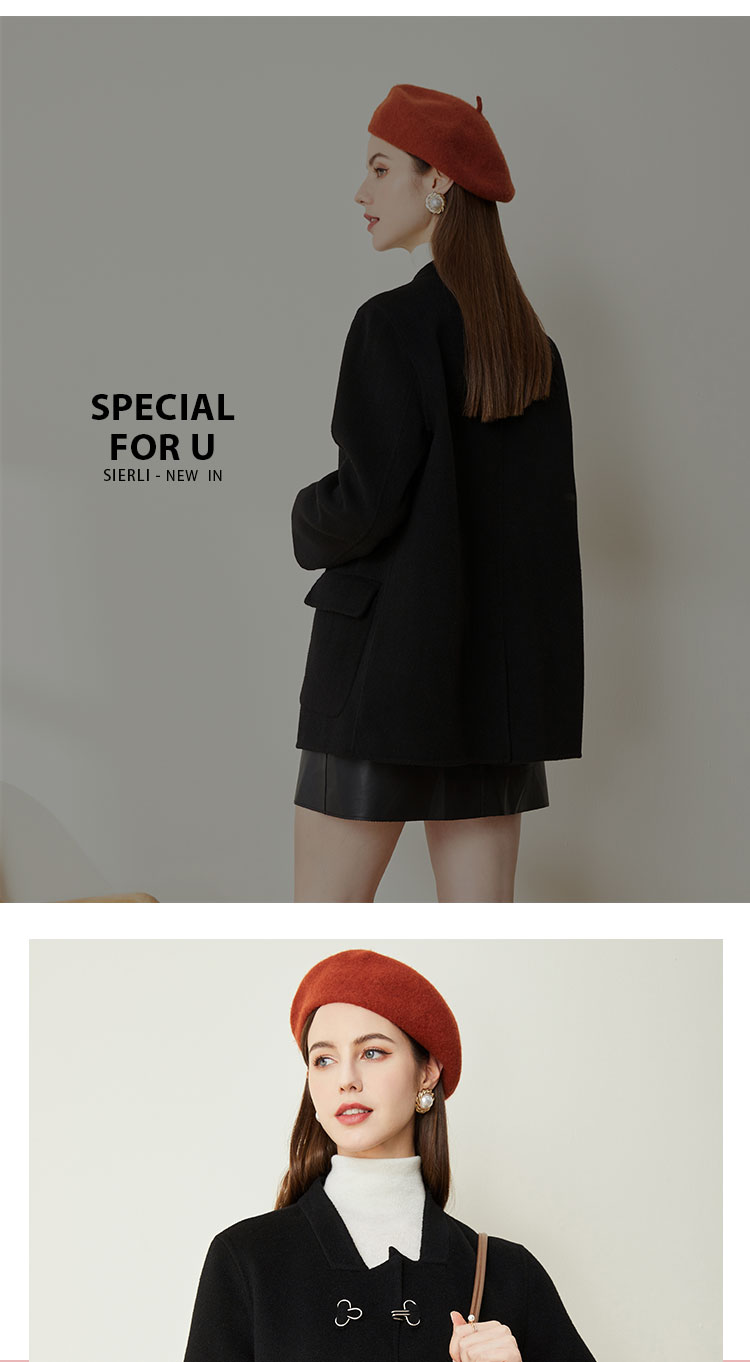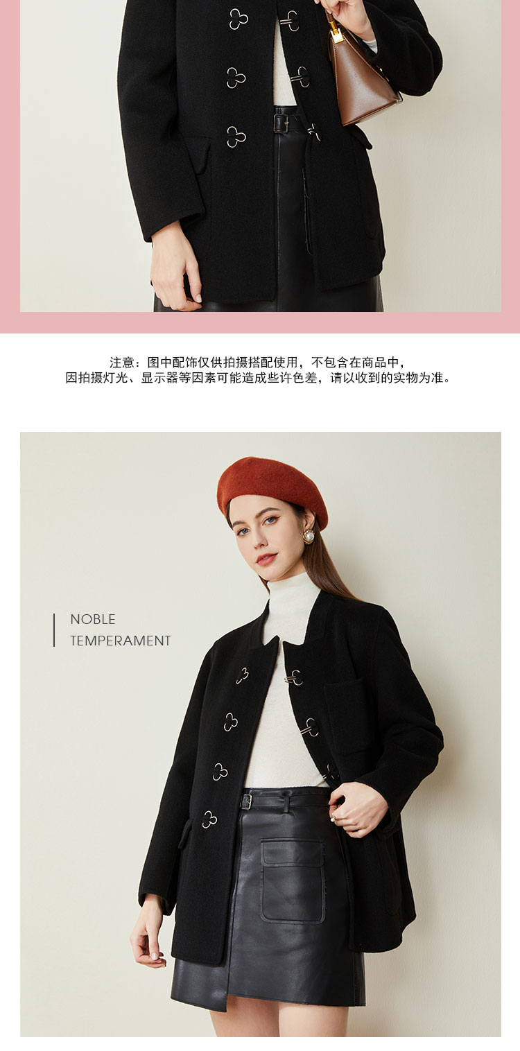 LH9V8斯尔丽瑟俪2021秋冬新款设计感时尚扣直筒显瘦羊毛双面呢短大衣