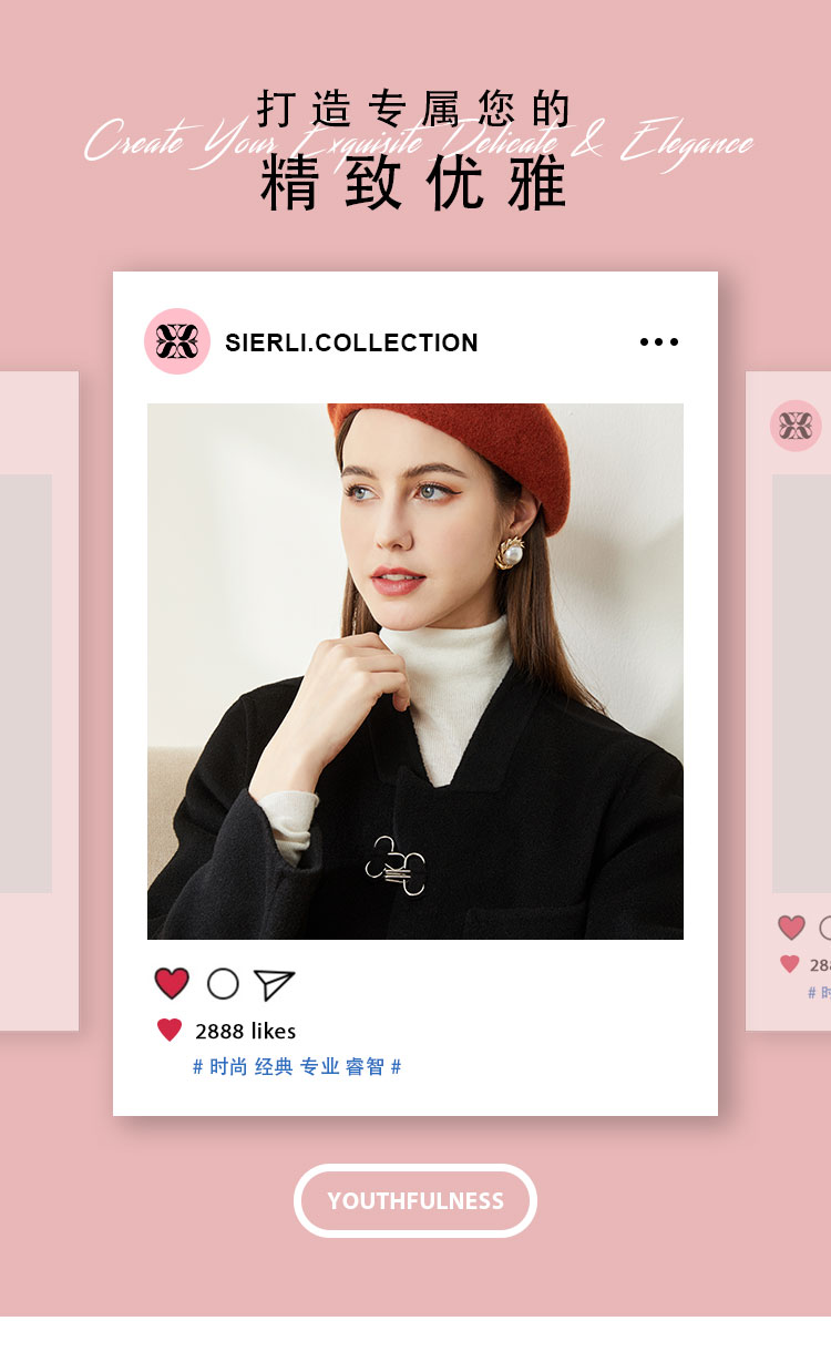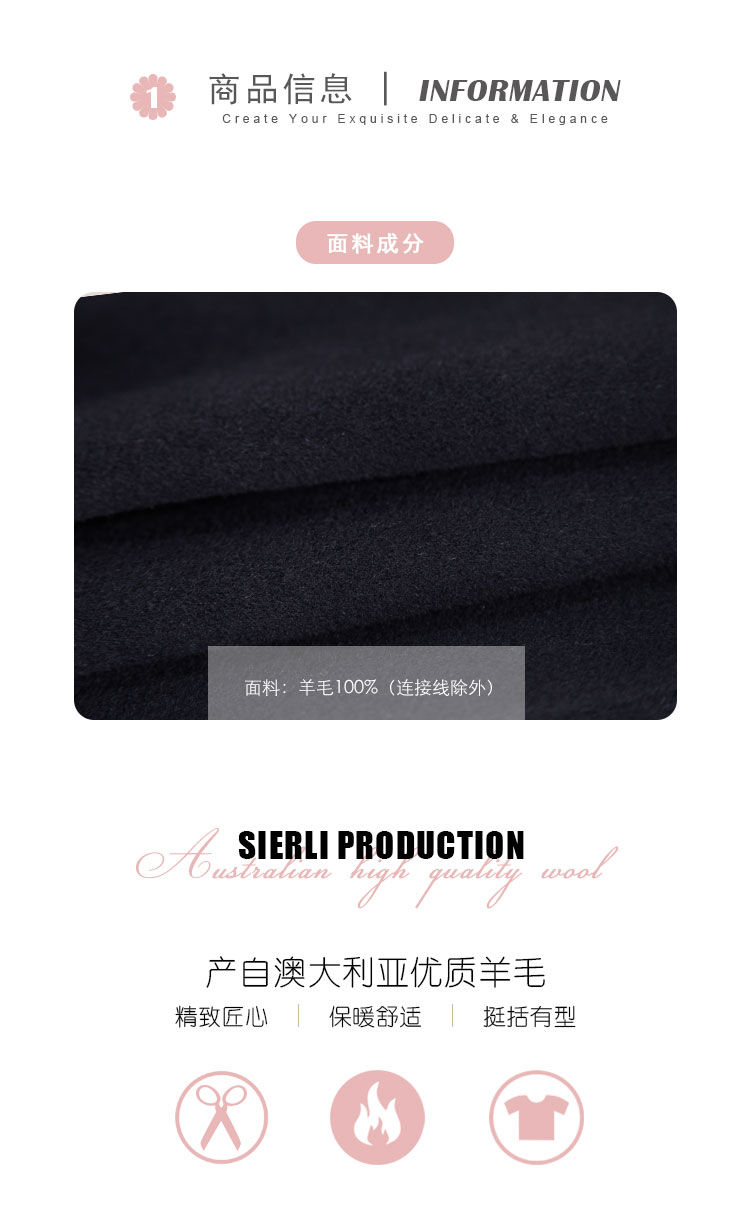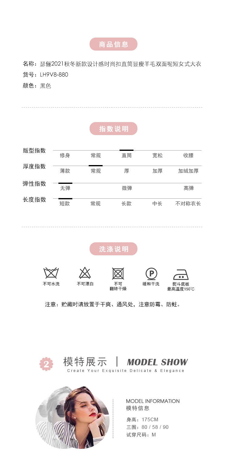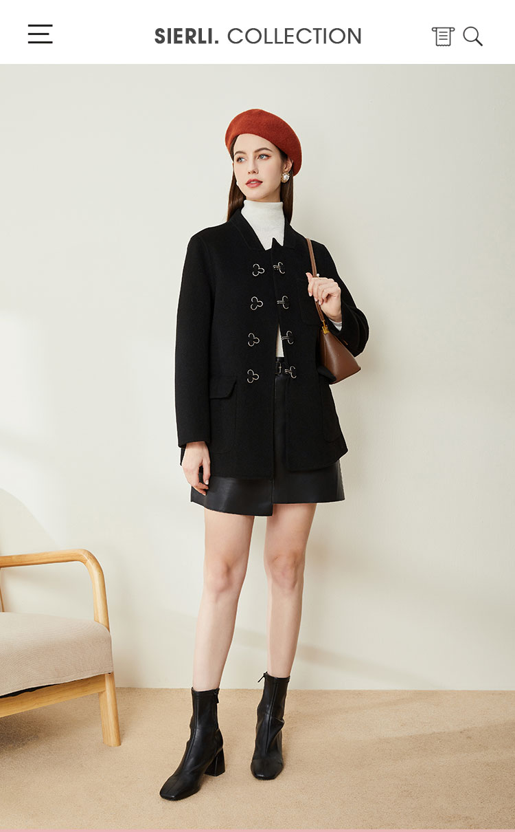 LH9V8斯尔丽瑟俪2021秋冬新款设计感时尚扣直筒显瘦羊毛双面呢短大衣