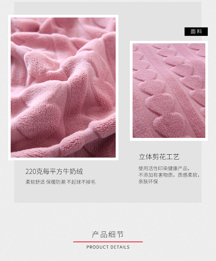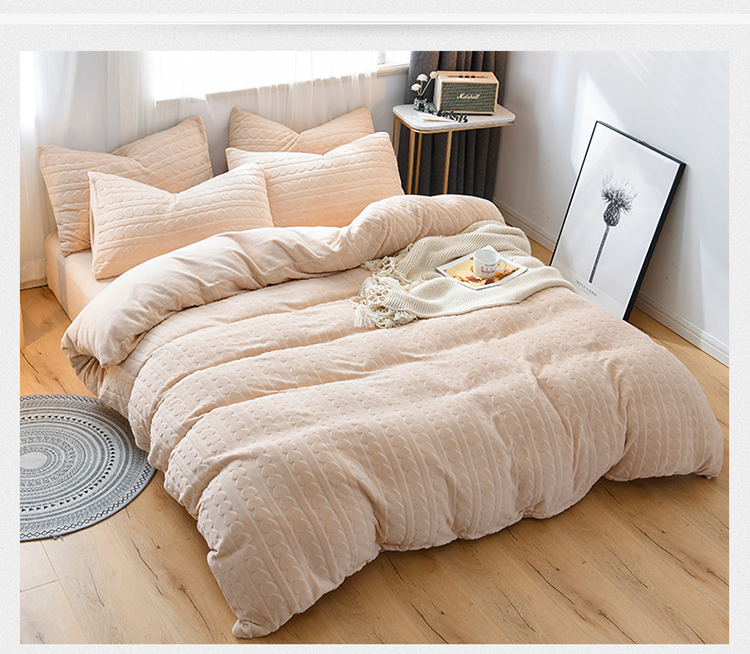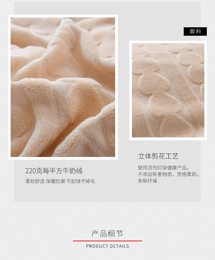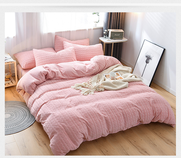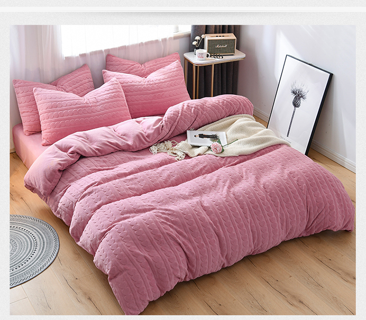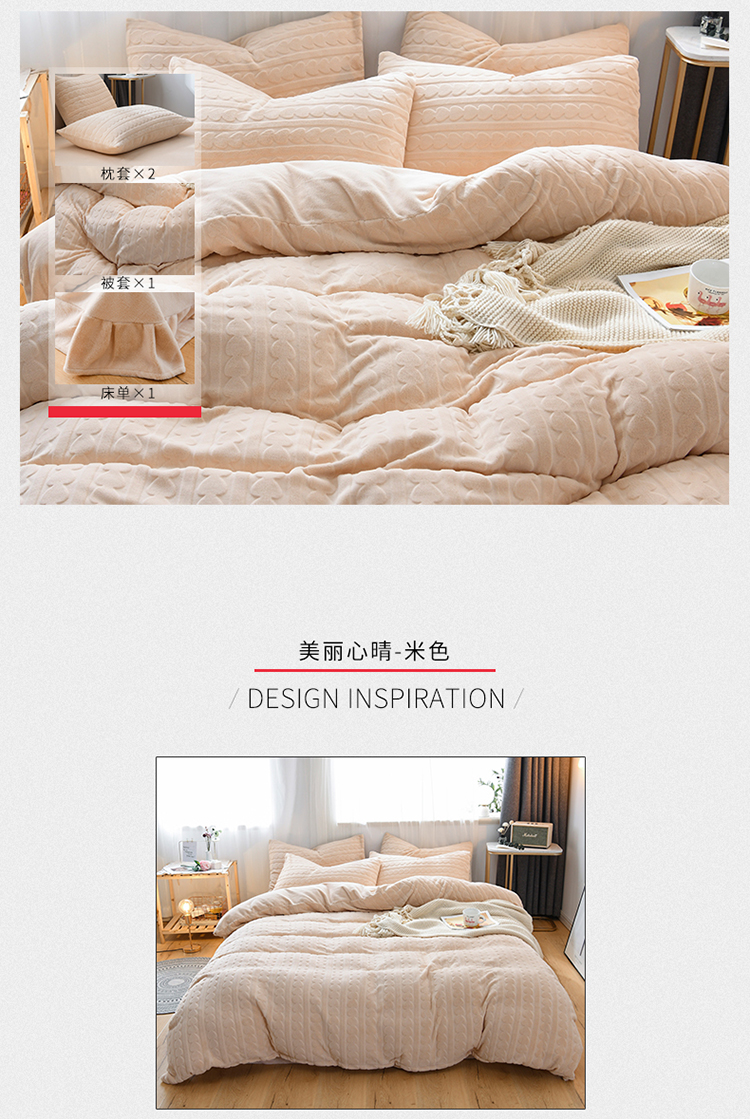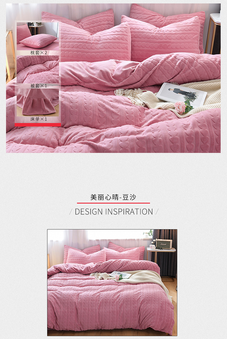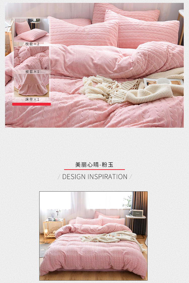 MY SIDE 秋冬新品 加厚保暖牛奶绒 被套床单床上用品 牛奶绒立体剪花四件套-美丽心晴