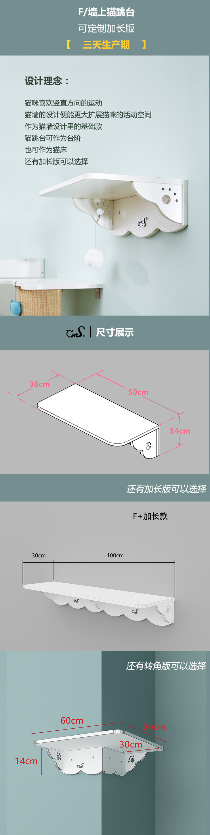 CatS猫家具猫墙系列之墙上跳台 实木生态板猫窝猫咪用品 F包邮