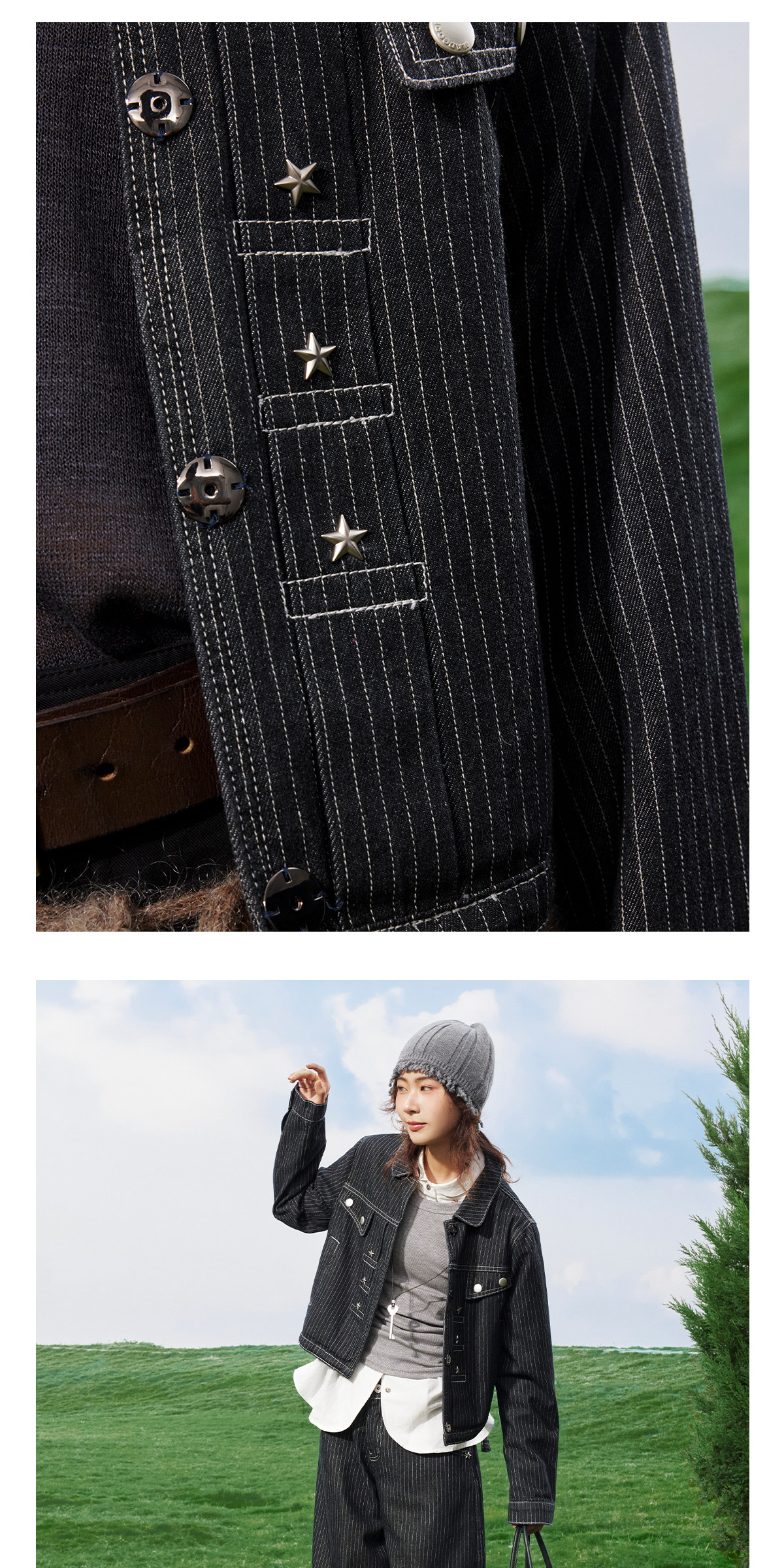 马得工地/MDGDWT211746/星星铆钉牛仔夹克