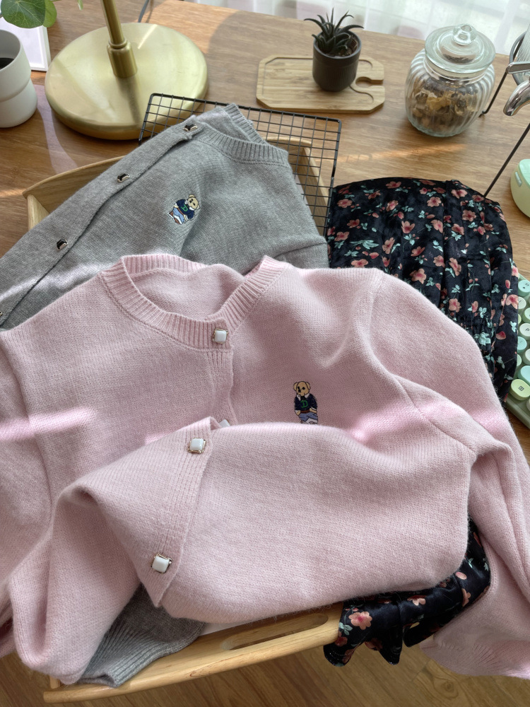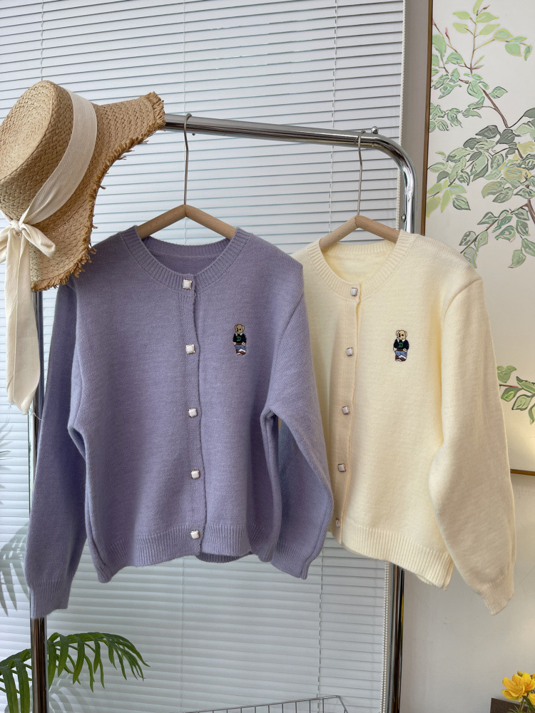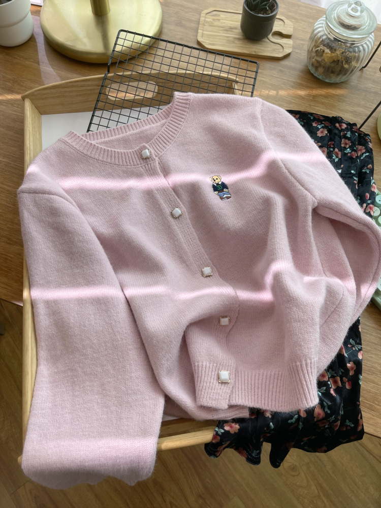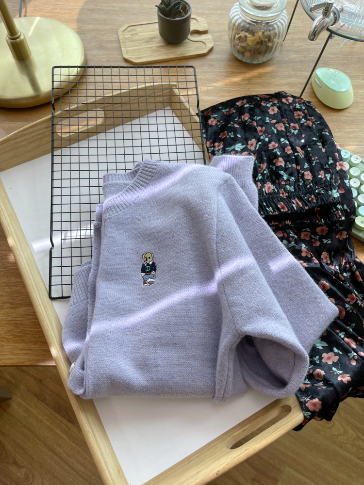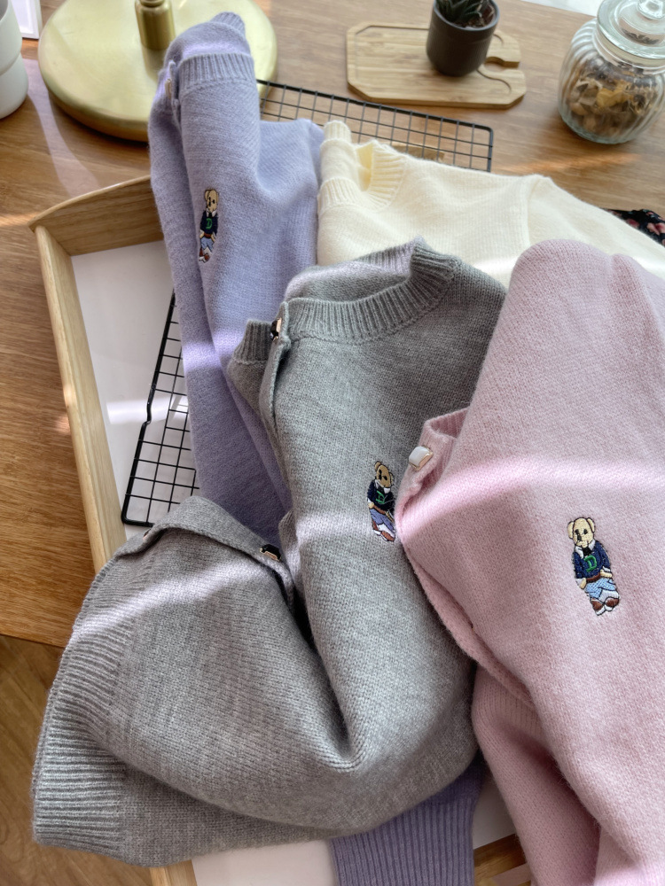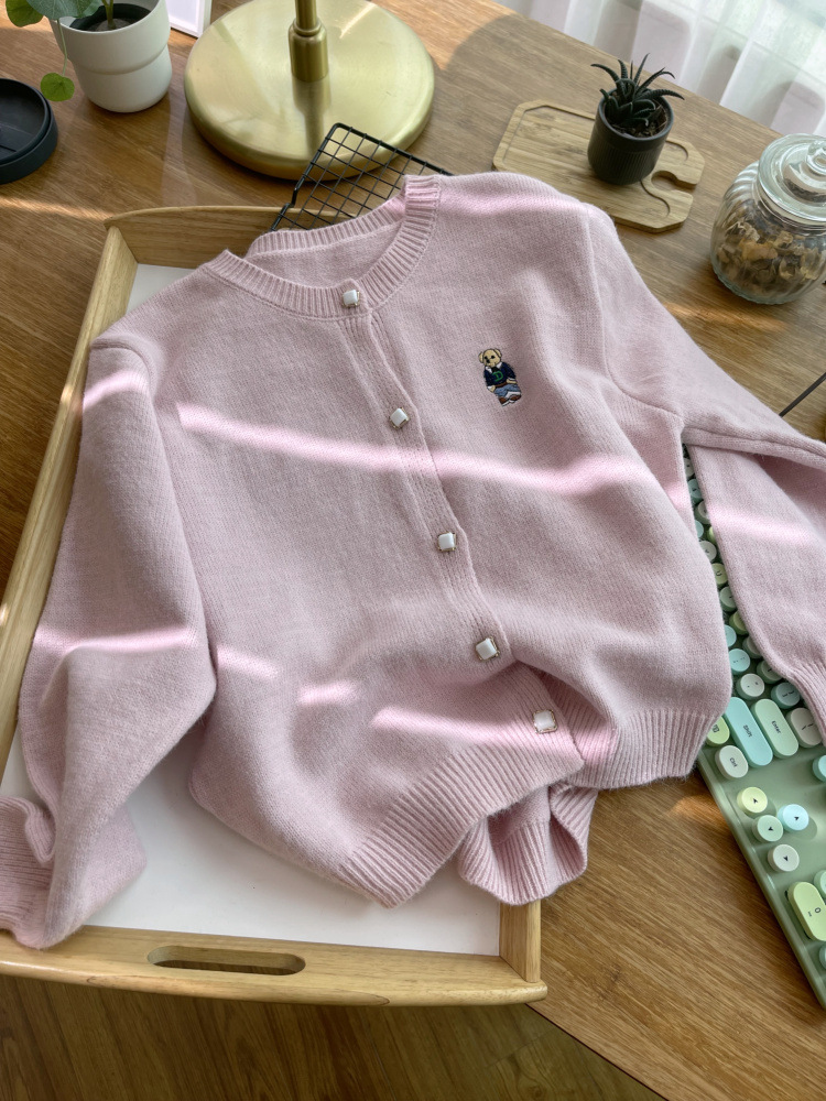 2025春新款【可爱小熊刺绣 套头毛衣女】宽松慵懒风 软糯圆领针织开衫