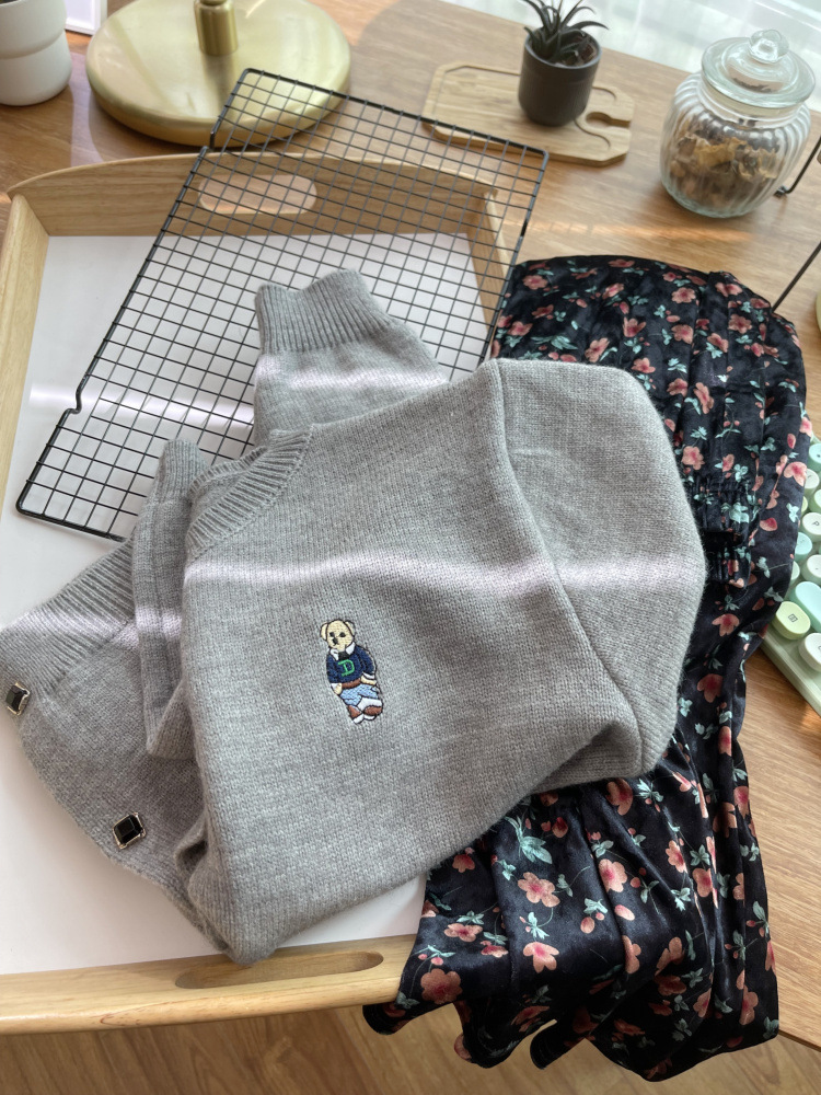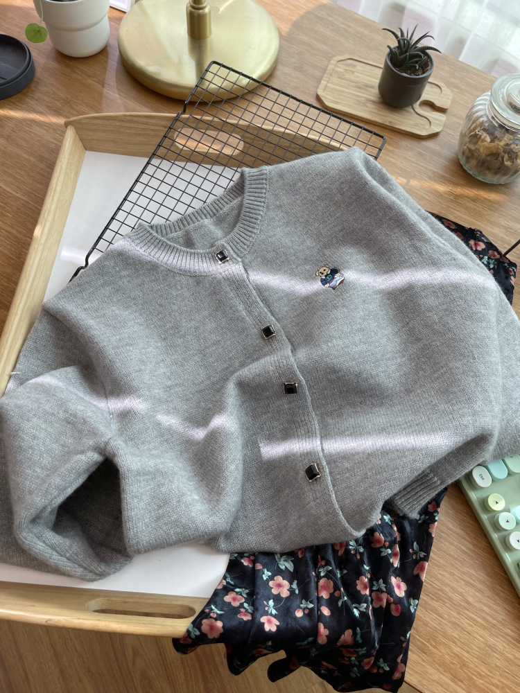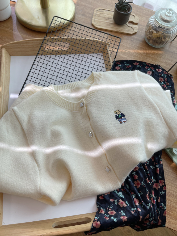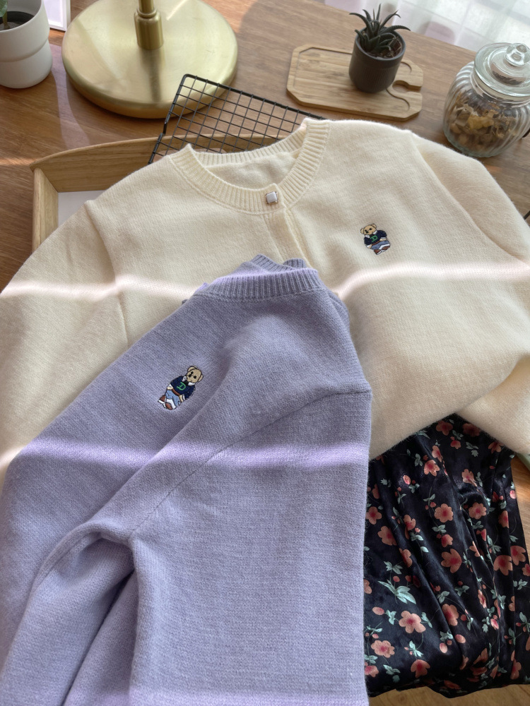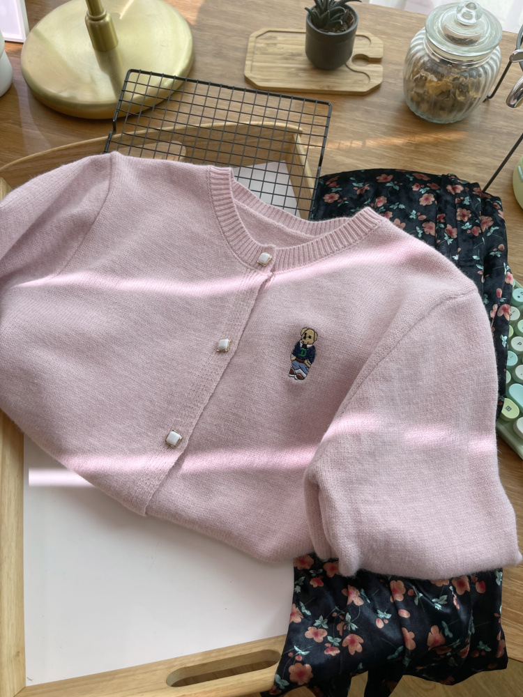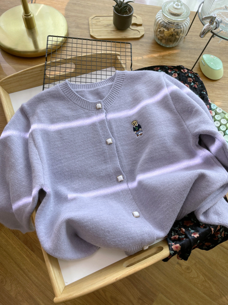 2025春新款【可爱小熊刺绣 套头毛衣女】宽松慵懒风 软糯圆领针织开衫