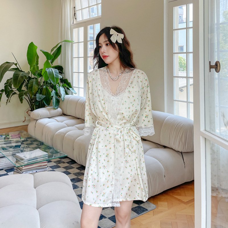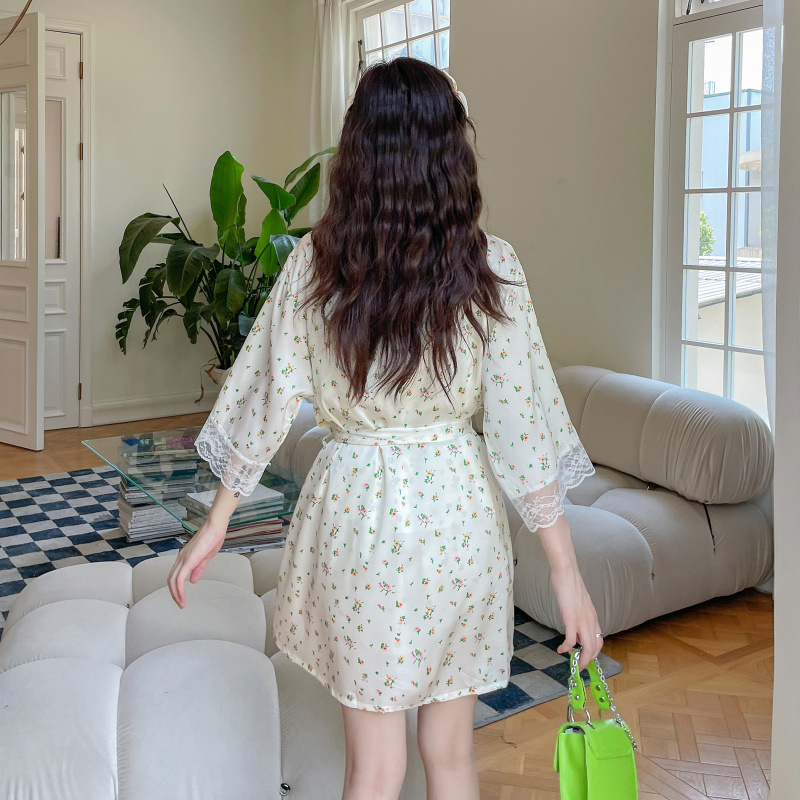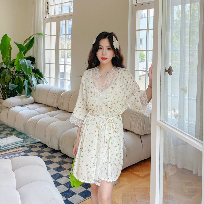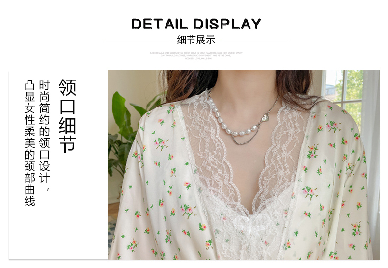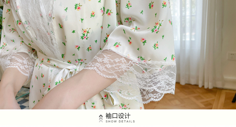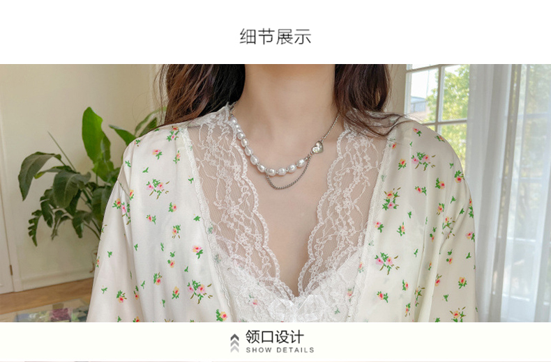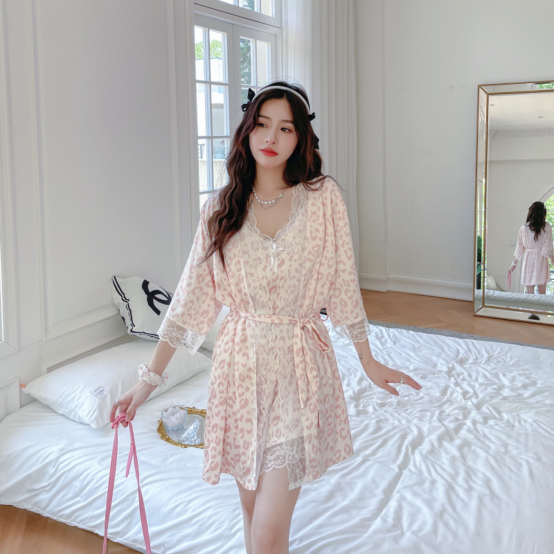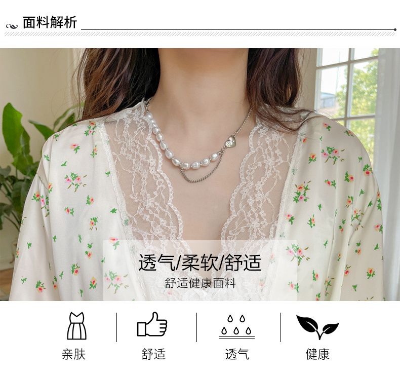 新款夏季冰雪丝睡衣女性感吊带短裤外袍薄款甜美三件套 QYSY666