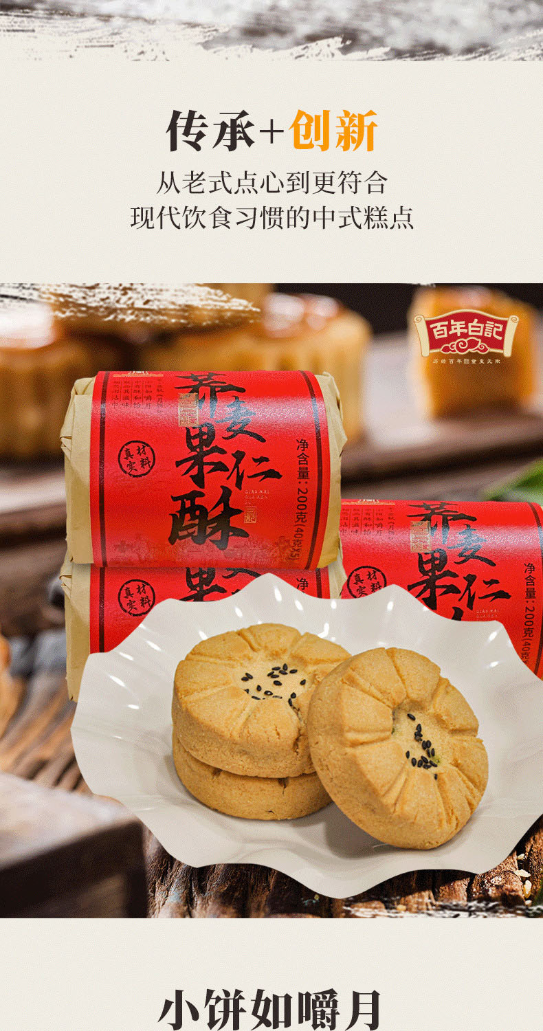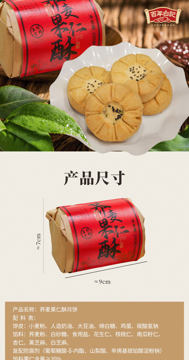 百年白记荞麦果仁酥,6包组合,河南老字号品牌,精选荞麦粉制酥,传统工艺制作,多种果仁做馅,营养丰富,入口即化,酥到掉渣D