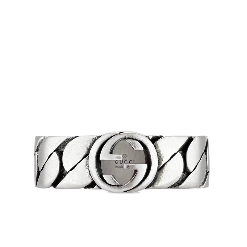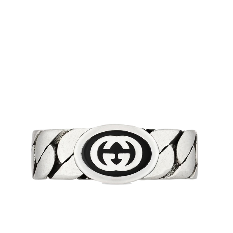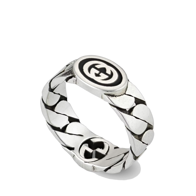 【包税】GUCCI/古驰 21新款 925纯银珐琅互扣式双G宽版马衔索链戒指指环678656J84108191