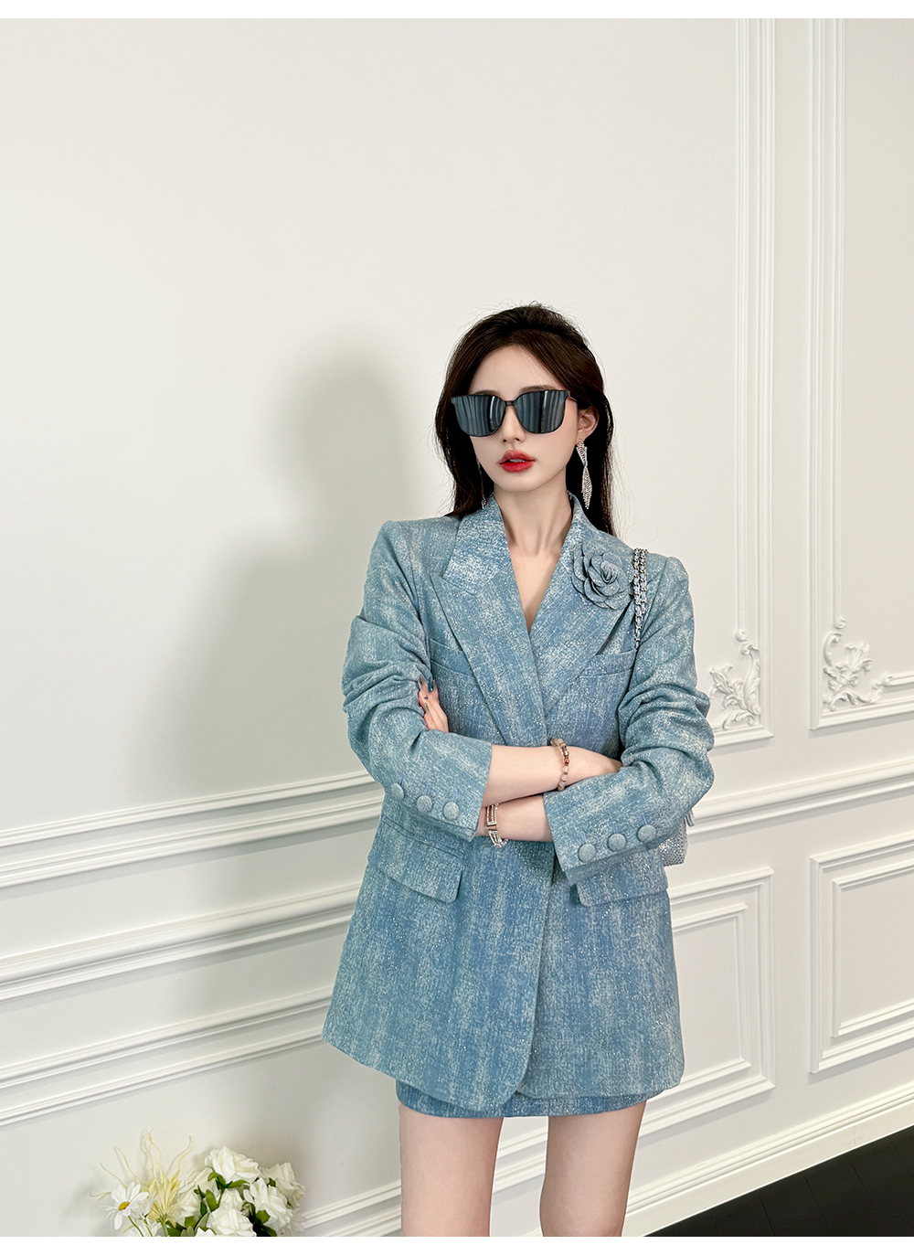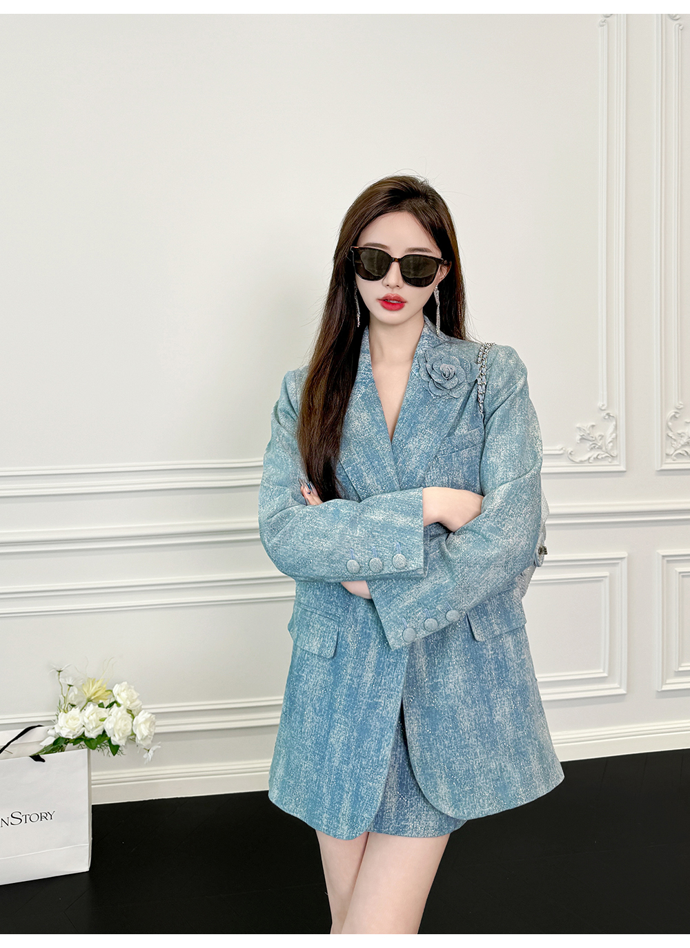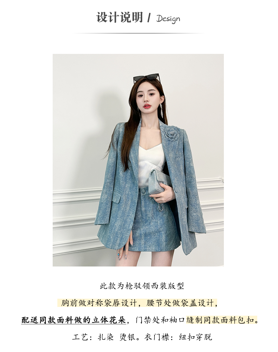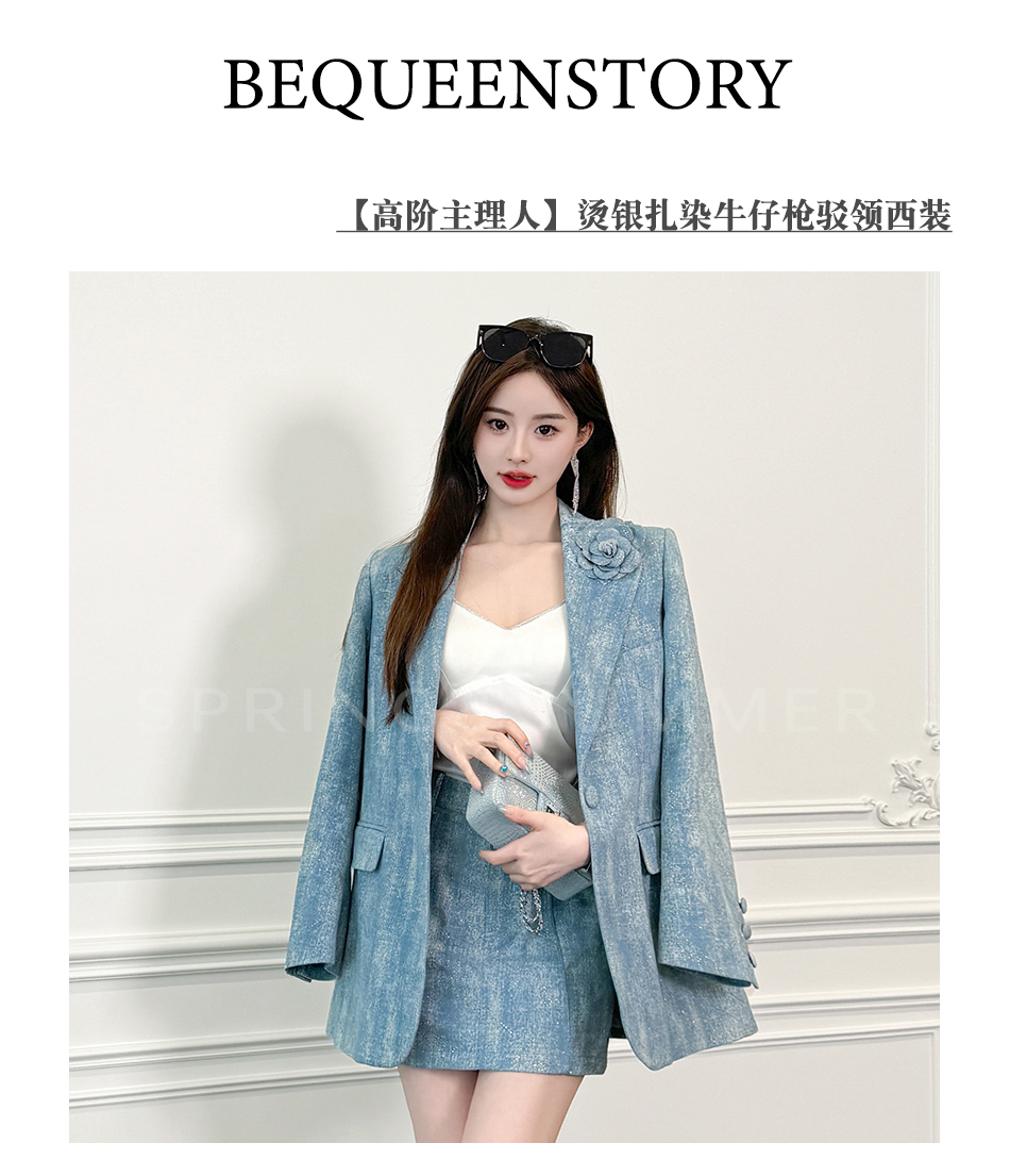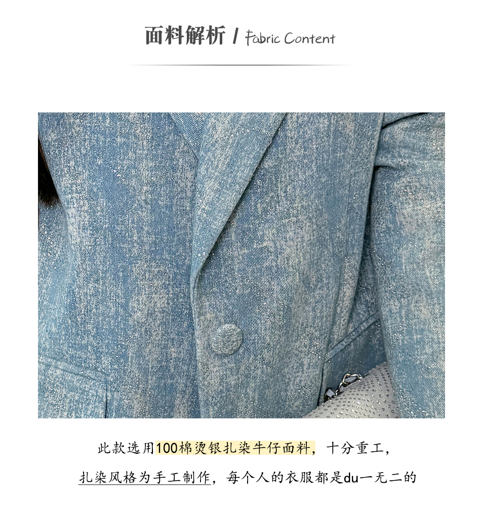 BeQueenStory【高阶主理人】重工烫银手工扎染牛仔枪驳领西装外套