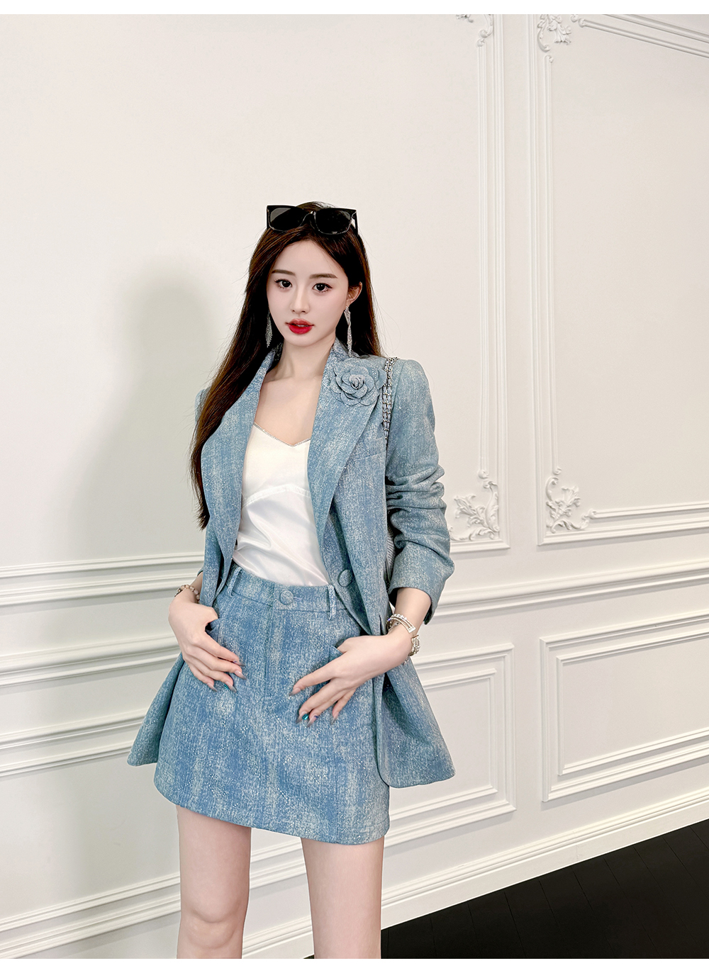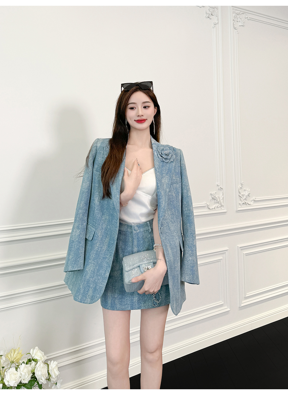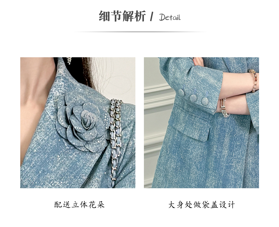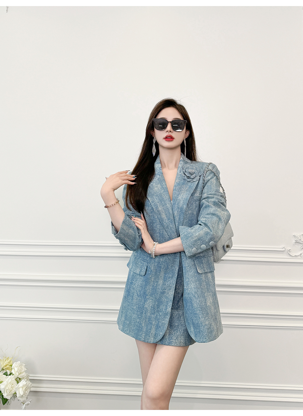 BeQueenStory【高阶主理人】重工烫银手工扎染牛仔枪驳领西装外套