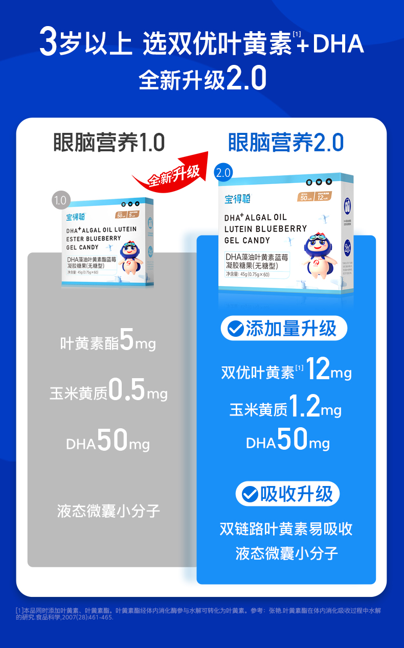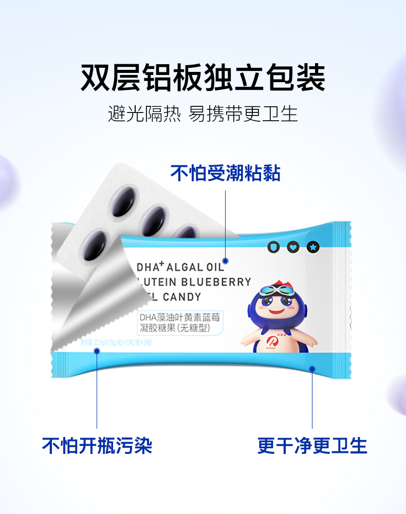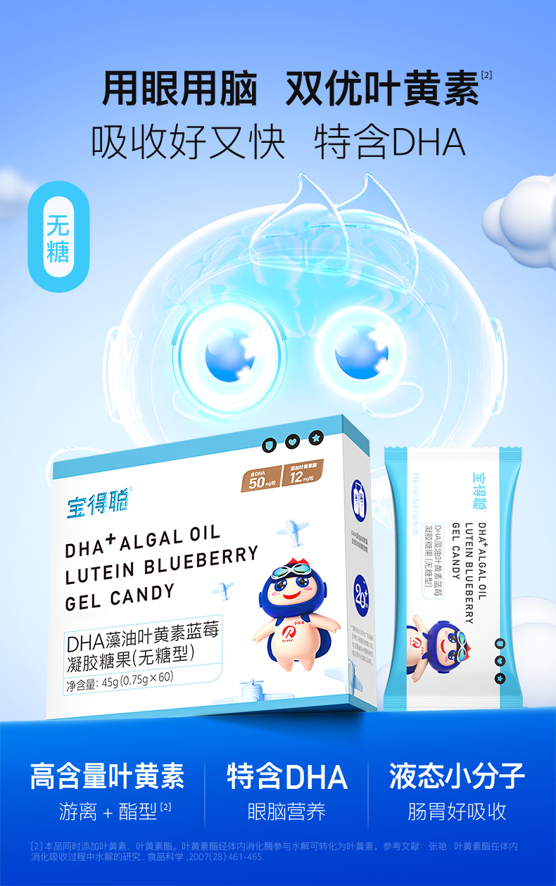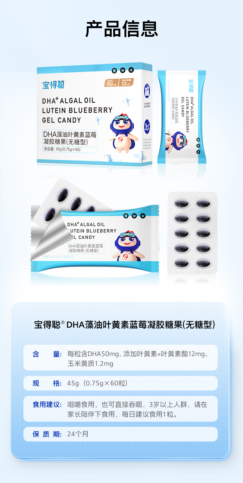 宝得聪DHA藻油叶黄素酯蓝莓凝胶糖果2.0升级版