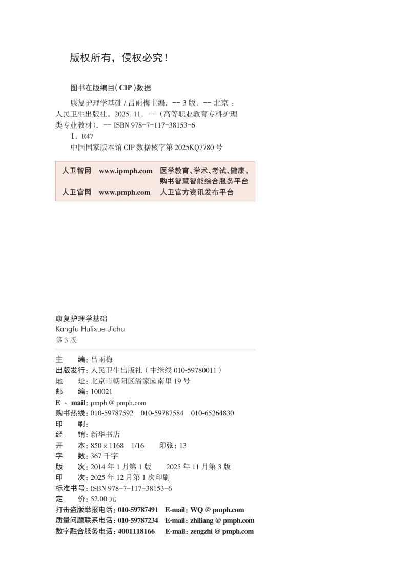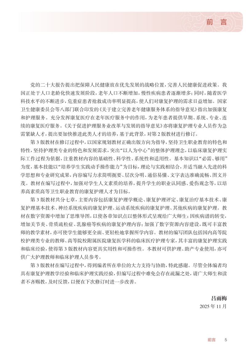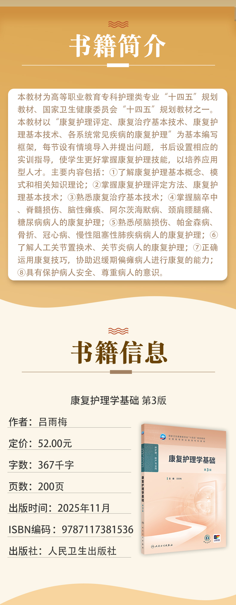 康复护理学基础 第3三版 十四五规划教材 全国高等职业教育专科教材 吕雨梅 供护理 助产专业用 9787117381536人民卫生出版社