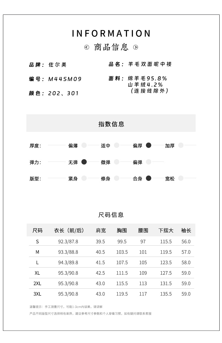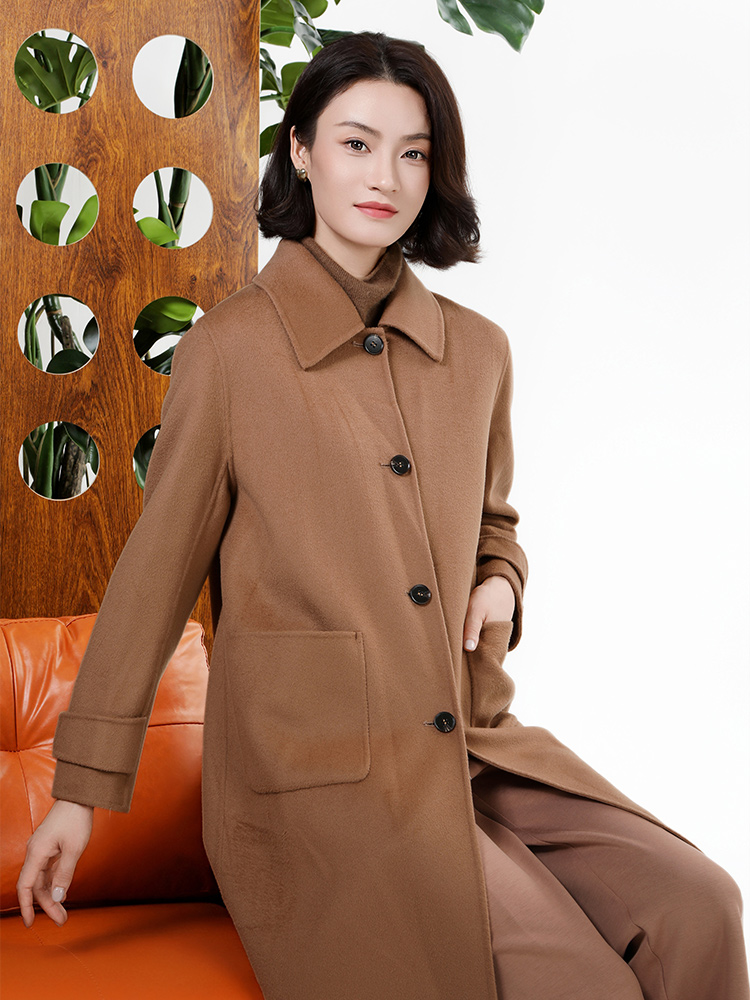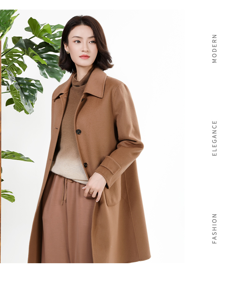 佐尔美秋冬新款复古经典简约气质绵羊毛双面呢中褛女M44SM09
