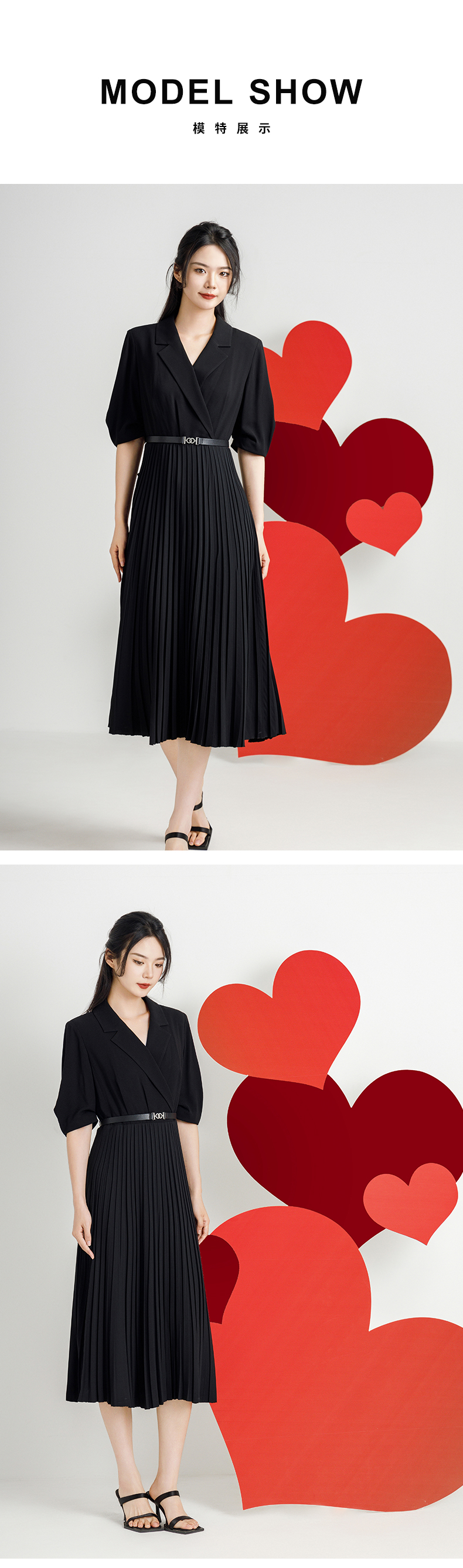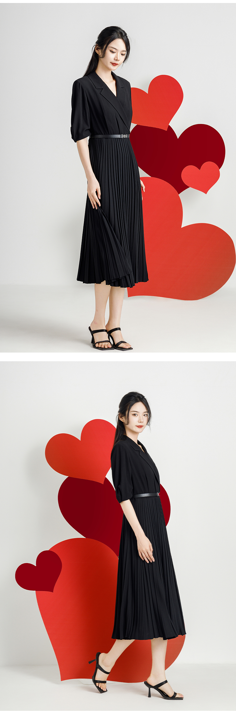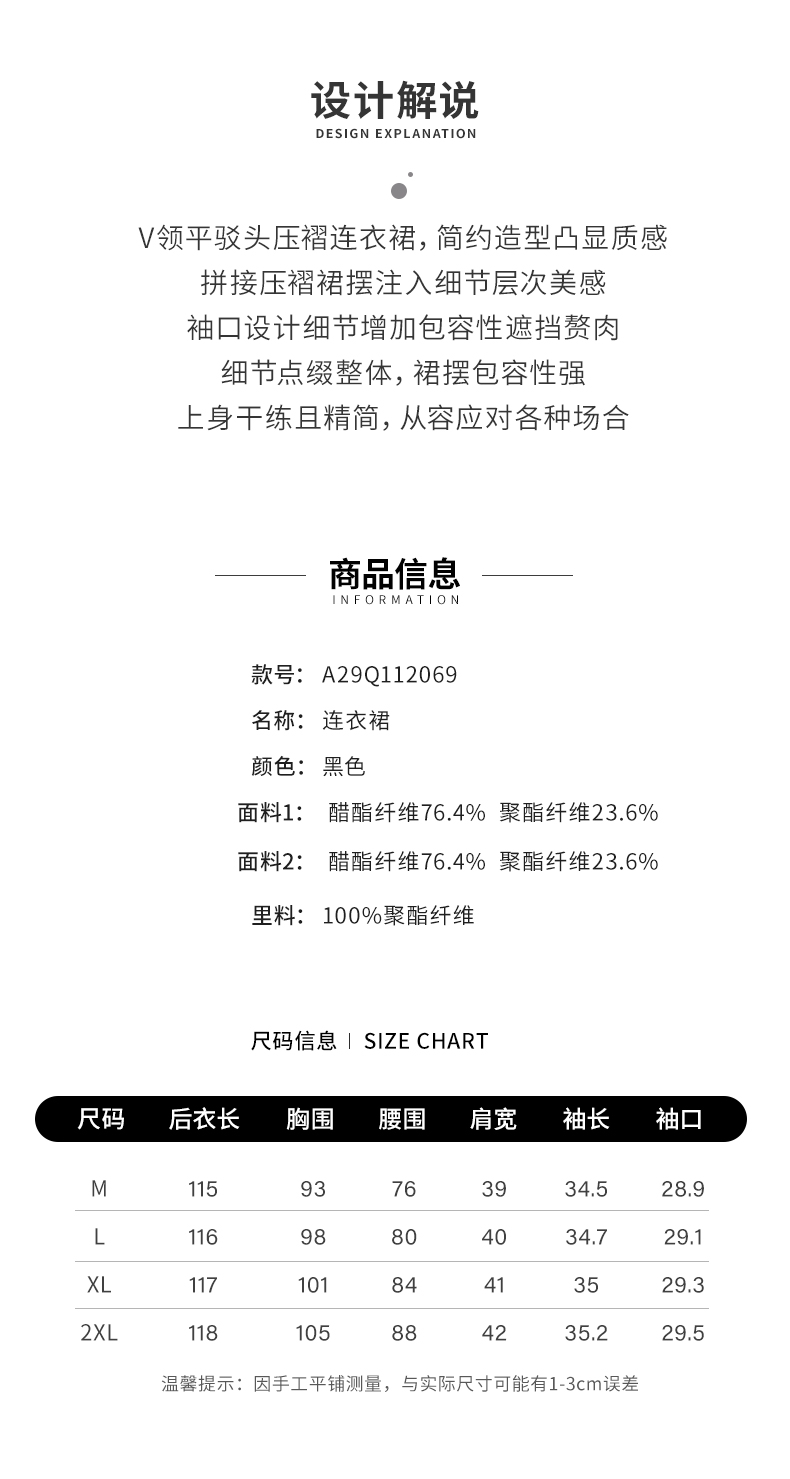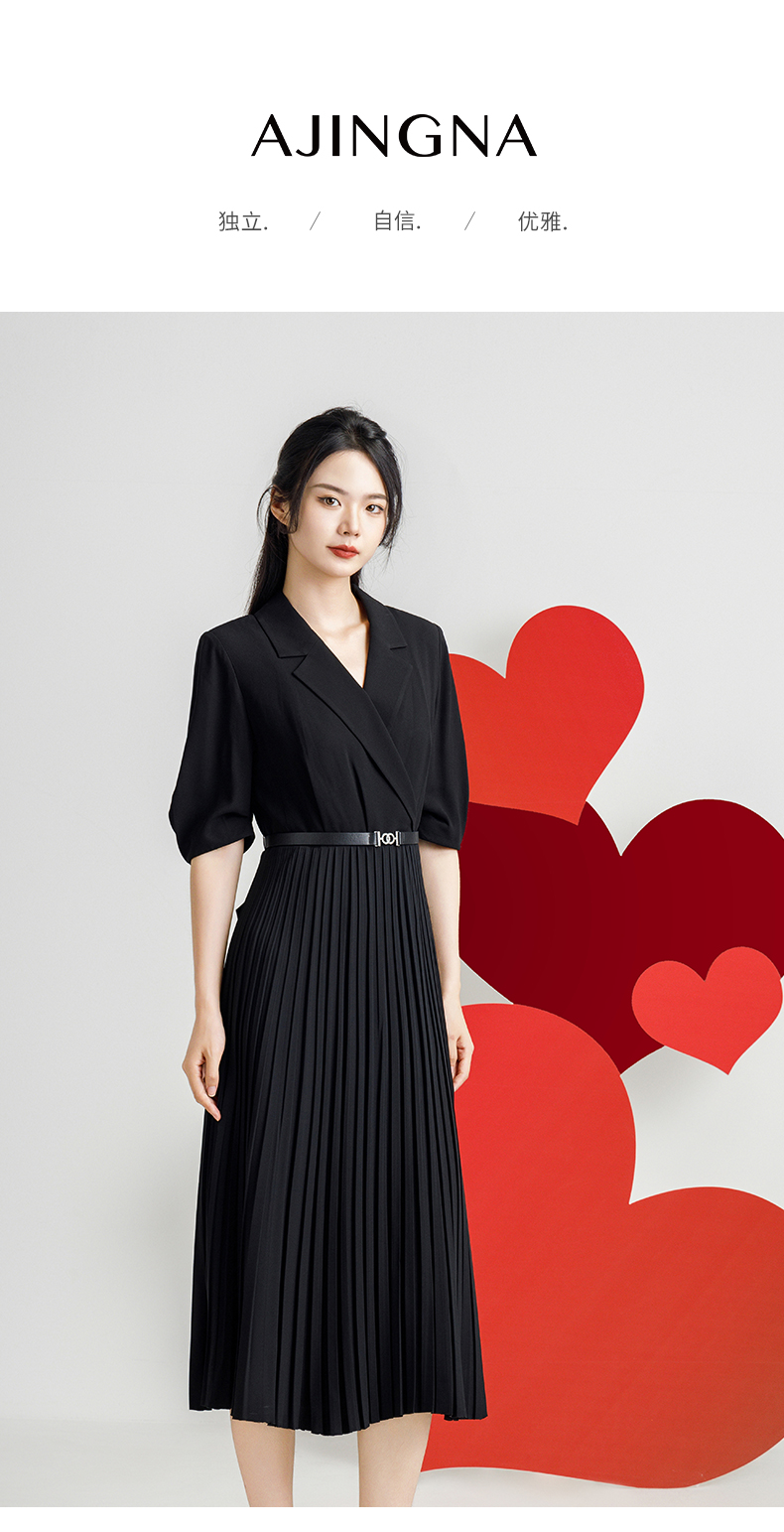 【商场同款】阿菁娜2024秋季新款V领平驳头压褶连衣裙A29Q112069